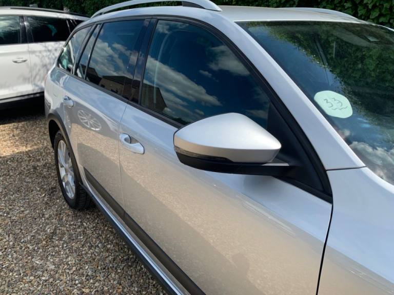 This 2016 Skoda Octavia TDI Scout presents a remarkable opportunity with its exceptionally low mileage of just 91,601 miles for a vehicle of its age. As a Euro 6 compliant model, it features a robust 2.0 litre diesel engine paired with a capable four wheel drive system, ensuring confident performance in various conditions. The Scout trim level enhances its already practical design, offering a compelling blend of style and utility. The Octavia TDI Scout stands out with its impressive acceleration, reaching 0-60mph in a swift 7.8 seconds, demonstrating its dynamic capabilities. This model also benefits from a low insurance group, making it an economical choice for many drivers. Furthermore, the generous boot space provides ample room for luggage, shopping, or equipment, highlighting its practicality for everyday use and longer journeys. All our cars come with a Pre-delivery service,a full 12 months mot and a Comprehensive 3 month/3000 mile mechanical breakdown warranty + £49 admin fee. .3 rear 3 point seatbelts + pretensioners, 3 spoke multi-function leather steering wheel, ABS, Aero wiper + intermittent function, Air re-circulation and pollen filter, Alarm, Alcantara/leather upholstery, Auto dimming rear view mirror, Automatic post collision braking, Auxiliary input socket, Backrest release, Black bodyside mouldings, Black wing mirrors, Bluetooth system, Body coloured bumpers, Body coloured door handles, Bolero Radio, Chrome inner door handles, Colour maxi dot trip computer, Columbus Sat Nav with media library and DVD, Curtain airbags, DAB Digital radio, Diesel particulate filter, Drive mode selector, Driver alert system, Driver and passenger airbags, Driver and passenger side airbags, Driver seatbelt warning indicator, Drivers vanity mirror, Drivers knee airbag, Dual zone automatic air conditioning with humidity sensor and control, Electric front windows, Electric rear windows with child safety lock, Electro-mechanical PAS, Electronic immobiliser, ESP including MBA, MSR, ASR, EDL, HBA, Floor mats, Front armrest, Front seat and rear pockets, Fuel supply cut off, Head airbags, Headlight washers, Height adj rear head restraints, Height adjustable front head restraints, Height adjustable front seatbelts + pretensioners, Height/reach adjust steering wheel, Hill hold control, Illuminated glovebox, Illuminated luggage compartment, Interior courtesy light operated by door switches, Internally adjustable headlight beam level, Isofix child seat preparation, Lane assist, Lashing eyelets in boot, Light assistant (coming home/tunnel light), Low rolling resistance tyres, Lumbar support, Metallic - Brilliant silver, Multi device interface, Outside temperature gauge, Passenger airbag deactivate switch, Passenger underseat drawer, Passenger vanity mirror, Rear armrest with cupholder, Rear mudflaps, Rear wiper, Remote central locking, Rough road pack - Octavia, SD card slot, Service interval indicator, Silver door mirrors, Silver roof rails, Split folding rear seats, Sunglasses storage, Through load system, Tinted glass, Tyre pressure monitor, Umbrella compartments in front doors with umbrellas, USB connection