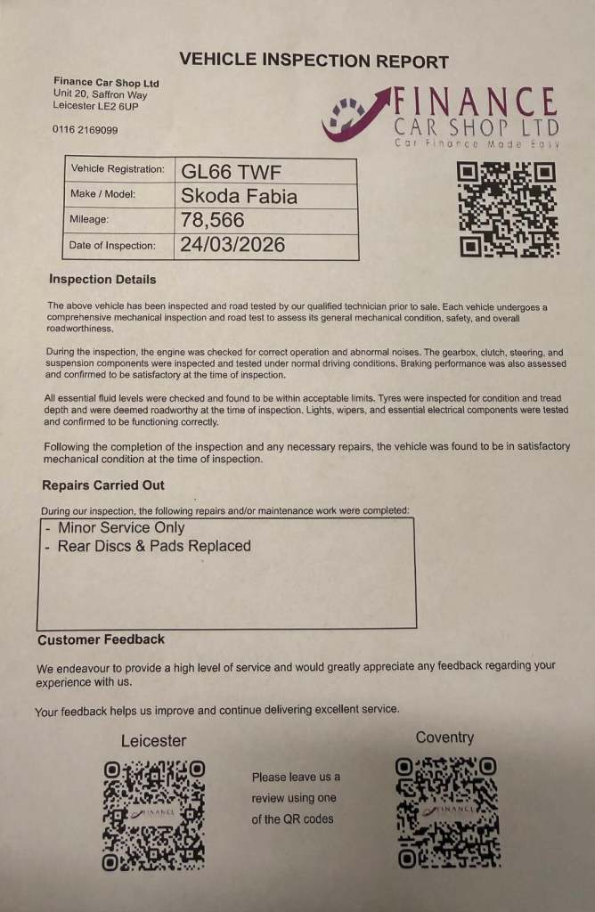 Skoda Fabia 1.2 TSI Monte Carlo Euro 6 (s/s) 5dr – Sporty Style with Panoramic Roof! This Skoda Fabia Monte Carlo is a stylish and sporty hatchback with great performance and low running costs. The 1.2 TSI engine offers a perfect balance of power and efficiency, making it ideal for both city driving and longer journeys.? Key Details:1.2 TSI Petrol Engine – Responsive and economicalEuro 6 (s/s) – ULEZ compliant5 Door Hatchback1 Former KeeperPart Service HistoryPanoramic Roof???? Why Choose This Fabia?Sporty Monte Carlo design with stylish interiorEconomical 1.2 TSI turbo engineLow insurance and running costsPractical 5-door hatchback with good boot spaceComfortable and enjoyable to drive???? Condition:A well-presented vehicle with part service history, clearly well looked after and drives superbly.+ 6 MONTHS WARRANTY INCLUDED + 6 MONTHS BREAKDOWN COVER + EXTENDED WARRANTY AVAILABLE + FINANCE OPTIONS AVAILABLE UPON REQUEST + DELIVERY CAN ONLY BE ARRANGED ONCE THE VEHICLE HAS BEEN VIEWED & INSPECTED IN PERSON AT OUR PREMISES + PHOTO ID IS REQUIRED FOR ALL VIEWINGS AND TEST DRIVES + WE CAN BE REACHED VIA WHATSAPP ON [Phone number removed] – FEEL FREE TO MESSAGE US + PLEASE NOTE, THE PRICE IS FIXED ON THIS VEHICLE. KINDLY BE AWARE OF THIS PRIOR TO ARRANGING A VIEWING + WE HAVE OVER 50 VEHICLES IN STOCK. AS NOT ALL VEHICLES ARE HELD ON SITE, PLEASE ENSURE YOU CALL IN ADVANCE BEFORE MAKING YOUR JOURNEY + BANK TRANSFER ONLY + MORE CARS AVAILABLE AT:WWW.FINANCECARSHOPLTD.CO.UK +