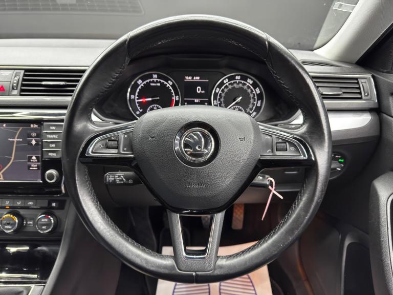 Here at Motor Gurus we are delighted to offer a Skoda Superb 1.6 TDI SE Technology DSG. This vehicle is in immaculate condition inside and out. This specific vehicle is finished in a METALLIC GREY and is contrasted by a BLACK LEATHER/SUEDE interior. This vehicle comes included with: FRONT & REAR PARKING SENSORS, PRIVACY GLASS, DRIVER ELECTRIC/MEMORY SEAT, AUTOMATIC HEADLIGHTS, CRUISE CONTROL, TWIN CUPHOLDERS, AUTO HOLD, DRIVING MODES, CLIMATE CONTROL, SAT NAVIGATION, DAB RADIO, BLUETOOTH AUDIO, TELEPHONE CONNECTIVITY, TYRE PRESSURE MONITORING AND MUCH MORE! Our Skoda Superb 1.6 TDI SE Technology DSG has come to us with 2 KEYS and is a 1 FROMER KEEPER (2 owners) FROM NEW! We will also provide this vehicle with a 12 MONTH MOT as well as a FRESH OIL SERVICE before it leaves our premises (OTR).