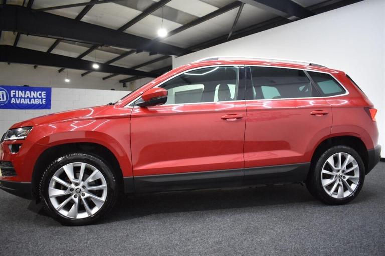 This 2018 Skoda Karoq TSI SE L offers an exceptional blend of practicality and comfort, making it a standout choice. Powered by a responsive 1.5 litre petrol engine, this Euro 6 compliant model delivers an impressive 0-60mph in just 8.6 seconds. The SE L trim ensures a well equipped experience, featuring full LED headlights with automatic activation and daytime running lights for enhanced visibility. Comfort is prioritised with heated front seats, while the KESSY keyless entry and start system adds a touch of modern convenience. The Karoq's appeal is further enhanced by its practical advantages. Its large boot space provides ample room for shopping, luggage, or sporting equipment, demonstrating its versatility for everyday life and adventures. Furthermore, its low CO2 emissions and low insurance group rating indicate that running costs are kept to a minimum, offering a more economical and affordable ownership experience compared to many other vehicles in its class.. 12V Power Socket in Boot,18in Alloy Wheels - Braga Silver,2 Reading Lights Front - For Driver and Passenger,3 Point Rear Belts x3,3 Spoke Leather Multifunction Steering Wheel,4 Foldable Roof Handles with Clothes Hooks in Rear,Aero Front Windscreen Wipers with Intermitted Function,Air Conditioning - Climate Control Dual Zone,Airbags - Driver,Airbags - Front Passenger with Deactivation,Alarm with Interior Monitoring - Back Up Horn - Tilt Sensor and SAFE Function,Amundsen Satellite Navigation with 8in Touchscreen Display Integrated Wifi and Infotainment Online 1 Year and WLAN,Automatic Door Unlocking Incase of Crash,Automatic Fuel Cut Off Incase of Crash,Body Coloured Door Mirrors and Door Handles,Bolero Radio,Boot Package - 2 Folding Hooks and Nets,Bottle Holders in Door Panel in the Front - 1.5 Litre Bottle - Driver and Passenger Door Panels,Cargo Element in Luggage Compartment,Chrome Framed Air Vents,Chrome Interior Door Handles,Chrome Package Outside Aluminium Bar Around the Windows,Chrome Roof Rails and Chrome Package,Colour Multifunction Trip Computer,Cruise Control with Speed Limiter,DAB Digital Radio and Bluetooth,Drive Mode Selection,Driver Fatigue Sensor,ESC Electronic Stability Control incl ABS Anti Lock Braking System,Electric Front and Rear Windows with Child Proof Lock,Electrically Adjustable - Heated - Folding Door Mirrors - Auto Dimming - Boarding Spots,Electronic Engine Immobiliser,Electronic Parking Brake with Auto Hold Function,Emergency Brake Signal,Foldable Hooks in the Boot,Folding Tables on Rear of Front Seats,Front - Head - Knee - Curtain - Front Side Airbags,Front Assist Radar,Front Centre Armrest with Storage Compartment - Rear Air Vents and 12v Socket,Full LED Headlights with AFS and LED Daytime Running Lights,Glasses Storage Compartment,Glovebox - Illuminated and Cooled,Headlights - Automatic Activation,Headlights - Washers,Heated Front Seats,Heated Rear Windscreen,Height Adjustable Driver and Front Passenger Seat,Height Adjustable Front Three-Point Seat Belts with Tensioners,ISOFIX Child Seat Preparation - Outer Rear,Ice Scraper,Illumination of Luggage Compartment,KESSY - Keyless Entry and Start System with SAFE System,Light Assistant,Light and Rain Sensor with Auto-Dimming Rear View Mirror,Luggage Compartment - Retractable Parcel Shelf,Manual Lumbar Support for Front Seats,Net Programme in Boot,Non Smokers Package,Parking Sensors - Front and Rear,Pedestrian Monitor,Pen Holder,Pollen Filter,Power Steering,Privacy Glass,RKA - Tyre Pressure Display,Reading Lights - Rear,Rear Boot Cover,Rear Lights - LED,Rear View Camera,Remote Central Locking - with 2 Keys,Removable LED Torch in Boot,Safety Reflectors on Front Doors,Safety Vest Holder,Seat Belt Reminder for all Seats,Seats - Split Folding Rear - 60-40,Seats - Varioflex,SmartLink Plus,Storage Box in Upper Central Dashboard - Closed,Storage Compartment Below the Passenger Seat,Storage Net on Centre Console - Passenger Side,Storage on Wheel Cover,Sun Visors with Illuminated Vanity Mirror,TPMS - Tyre Pressure Monitoring System,Textile Floor Mats,Third Brake Light,Three Rear Head Rests,Two Tone Horn,Tyre Repair Kit,Umbrella Under Front Passenger Seat