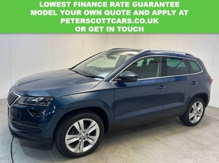 Stunning, high specification Skoda Karoq with Satellite navigation, Rear view camera, Heated seats, Apple Car play, Parking sensors and much more. Lovingly cared for low mileage example with service history. This Skoda Karoq has been independently inspected by the AA for your added peace of mind. We have uploaded a full Hd walkaround video to show the quality both inside and out of this practical and economical Skoda. Visit [Website URL removed], to reserve this car and apply for finance. Low rate finance available. Please ask for a personal quote or use the finance calculators on our website before submitting a full application. All finance can be arranged and signed remotely. Comes with both keys, service history all documentation full clear Gold HPI Report, 128 point AA Inspection Report carried out by AA engineers including a 5 mile test drive before issuing the Pass certificate and the 5 page inspection report. AA History Check Reprt and 12 months AA Breakdown Cover included. Please call or message if you require further information or to make an arrangement to view. Peter Scott Cars is an Award Winning family run dealership with over 30 years experience in the sourcing and supply of high quality vehicles..12V Power Socket in Boot, 18in Alloy Wheels - Braga Silver, 2 Reading Lights Front - For Driver and Passenger, 3 Point Rear Belts x3, 3 Spoke Leather Sports Multi-Function Steering Wheel, 4 Foldable Roof Handles with Clothes Hooks in Rear, Additional 4 Loudspeakers, Air Conditioning - Climate Control Dual Zone, Airbags - Driver, Airbags - Front Passenger with Deactivation, Alarm with Interior Monitoring - Back Up Horn - Tilt Sensor and SAFE Function, Amundsen Satellite Navigation with 8in Touchscreen Display Integrated Wifi and Infotainment Online 1 Year and WLAN, Anti-Theft Locking Wheel Bolts, Automatic Door Unlocking Incase of Crash, Automatic Fuel Cut Off Incase of Crash, Body Coloured Door Mirrors and Door Handles, Bolero Radio, Boot Package - 2 Folding Hooks and Nets, Bottle Holders in Door Panel in the Front - 1.5 Litre Bottle - Driver and Passenger Door Panels, Cargo Element in Luggage Compartment, Chrome Framed Air Vents, Chrome Interior Door Handles, Clothes Hook on B-pillar, Colour Multifunction Trip Computer, Cruise Control with Speed Limiter, DAB Digital Radio and Bluetooth, Drive Mode Selection, Driver Fatigue Sensor, Electric Front and Rear Windows with Child Proof Lock, Electrically Adjustable - Heated - Folding Door Mirrors - Auto Dimming - Boarding Spots, Electronic Engine Immobiliser, Electronic Parking Brake with Auto Hold Function, Emergency Brake Signal, ESC Electronic Stability Control incl ABS Anti Lock Braking System, Foldable Hooks in the Boot, Folding Tables on Rear of Front Seats, Front - Head - Knee - Curtain - Front Side Airbags, Front Assist Radar, Front Centre Armrest with Storage Compartment - Rear Air Vents and 12v Socket, Front Windshield Wiper Aero inc Front Wiper-Speed Switch with Frequency Selector, Full LED Headlights with AFS and LED Daytime Running Lights, Glasses Storage Compartment, Glovebox - Illuminated and Cooled, Headlights - Automatic Activation, Headlights - Washers, Heated Front Seats, Heated Rear Windscreen, Height Adjustable Driver and Front Passenger Seat, Height Adjustable Front Three-Point Seat Belts with Tensioners, Ice Scraper, Illumination of Luggage Compartment, ISOFIX Child Seat Preparation - Outer Rear, KESSY - Keyless Entry and Start System with SAFE System, LED Cornering Front Fog Lights, Level Indicator, Light Assistant, Lumbar Support for Front Seats, Net Programme in Boot, Non Smokers Package, Parking Sensors - Front and Rear, Pedestrian Monitor, Pen Holder, Petrol Blue, Pollen Filter, Power
