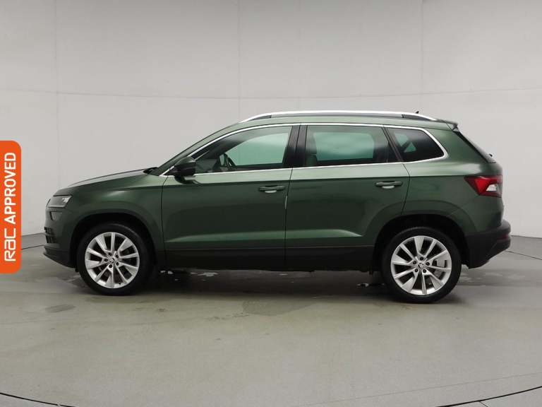 Service History - Last At 109k - The Karoq Leaves A Powerful Impression With Its Refined Exterior Styling, Visit Us In-Store, Explore Its Features, And Take It For A Test Drive That Captures Attention From Every Angle. - Drive In Style And Comfort With This Vehicles £845 Worth Of Factory Fitted Extras Including, Luxurious Leather Upholstery, Piano Black Trim And Finished In Emerald Green Metallic Paint - Standout Key Features Include Gps Satellite Navigation System, Boasting Intuitive Sat Nav Functionality For Seamless Journeys, Rear Assist Camera. As You Step Inside Youll Discover An Impressive Array Of Technology, Including Apple CarPlay, Android Auto, Collision Warning System, Rear Radar Type Parking Sensors, Rain Sensing Windscreen Wipers, Radar Guided Adaptive Cruise Control, Collision Warning System. Keep Everyone Onboard Entertained Thanks To Features Such As Mp3 iPhone iPod USB & Aux Music Ports, Voice Control For Media Functions, Bluetooth Wireless SmartPhone Connectivity, Wifi Hotspot To Keep You Connected (Subscription And Data Plan Charges May Apply), DAB Digital Radio For A Myriad Of Stations To Suit Your Mood. Relax In The Ultimate Comfort Thanks To Keyless Entry, Keyless Start, Dual-Zone Climate Control, Air Conditioning, Electrically Foldable Door Mirrors, Refrigerated Glove Box, Tinted Glass, Anti Dazzle Rear View Mirror, Isofix, Front And Rear Electric Windows, Rear Privacy Glass. On The Exterior Youll Be Sure To Notice The 18 Inch Alloy Wheels. Also Fitte...
