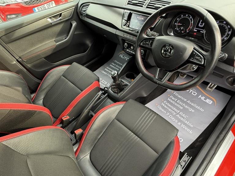 2019 Skoda Fabia 1.0 TSI Monte Carlo Petrol Manual 5 Door Estate In Red With Only 69,363 Miles, MOT Until 09/01/2027 - No Advisories, Full Service History - Last Service at 68,208 Miles (13/01/2026), ULEZ Compliant - No Clean Air Zone Charges, Only 2 Former Keepers, Road Tax - Only £195 Per Year, Very Economical - 68.9 MPG (Extra Urban), Boot Capacity - 530 Litres, This Unique Fabia Is A Fantastic Option For Those In Need Of A Spacious Modern Estate With A Sporty Feel All While Being Cheap To Run! This Desirable Monte Carlo Model Comes With Extras Such As - Apple Car Play, Android Auto, Mirror Link, SmartLink Plus, DAB Radio, 6.5in Touchscreen Display, USB Port, Climate Control Air Conditioning, Rear Acoustic Parking Sensors, Multifunction Trip Computer, Speed Limiter, Monte Carlo Logo and Exterior Styling Including Rear Spoiler - Rear Diffuser - Front Grille and Door Mirrors in Black, Monte Carlo Styling with Carbon Leather Bolstered Seats, Sports Leather Multi-Function Steering Wheel, 16in Alloy Wheels - Black Italia, Electric Windows, ISOFIX, Remote Central Locking, 2 x Remote Keys All Vehicles Are Fully Valeted With A 45 point inspection check undertaken, Part Exchange & Test Drive Welcome, Finance Available On All Cars - Come Direct For No Admin Fees & Competitive Prices - Good and Bad Credit Welcome - No Obligation Quote, 3 - 36 Month Warranty Available, Open 7 Days A Week. For More Pictures and Info Please Visit [Website URL removed] The specification is for a typical vehicle of this model and year when manufactured. Every effort has been made to ensure the accuracy of the information provided however there may be differences to the specification of the actual vehicle in stock, or the vehicle may have been modified. Do not rely entirely on the listed specification and please check to confirm that any features which may influence your decision to buy are present, and the actual specification of the vehicle meets your requirements and expectations.