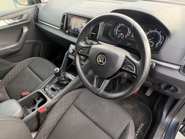 This 2019 Skoda Karoq TDI SE is a great example with a clear vehicle history. This popular compact SUV features a 1.6 litre Euro 6 diesel engine, offering a blend of efficiency and performance. The SE trim level comes well equipped, including automatic headlights that activate when needed, and a light and rain sensor system that also includes an auto dimming rear view mirror for your convenience. Inside, you can enjoy your favourite radio stations with DAB digital radio and stay connected on the go with Bluetooth functionality. Comfort is assured with dual zone climate control air conditioning, and parking is made easier with rear parking sensors.The Skoda Karoq TDI SE stands out with its impressive fuel economy, achieving around 50 miles per gallon, which is excellent for its class and helps to keep running costs down. Its low CO2 emissions also contribute to a more environmentally friendly drive. Furthermore, this model boasts a large boot space, providing ample room for shopping, luggage, or sports equipment, making it a practical choice for families and individuals alike. The Karoq also sits in a low insurance group, indicating that it is more affordable to insure compared to many other vehicles of a similar size and type.For any out-of-hours enquiries, please feel free to contact us via WhatsApp at 07741 176500. We will respond as promptly as possible and assist you with your enquiry.