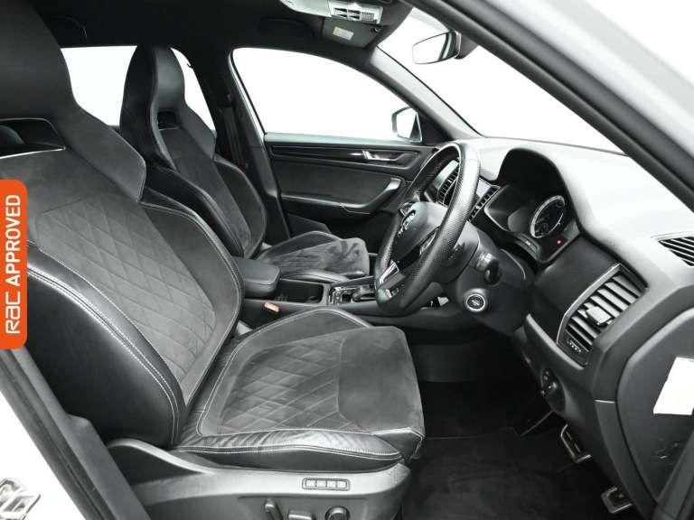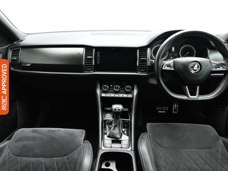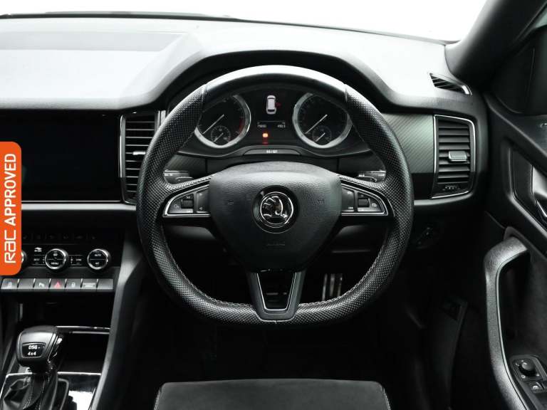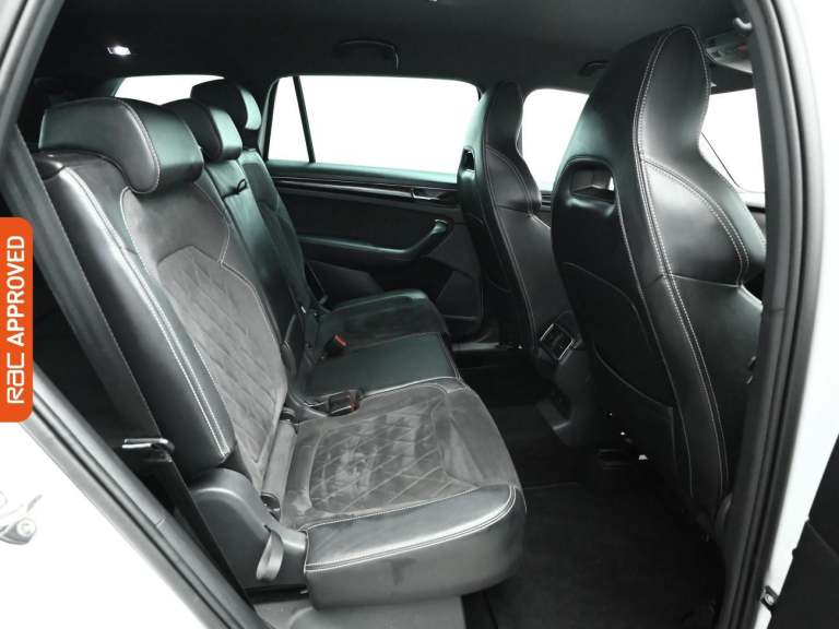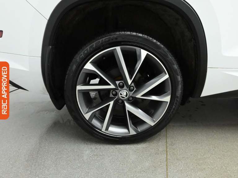 RAC Multi-Point Inspection and Verified Service History Turn Every Family Drive Into A Voyage Of Discovery With The Robust And Spacious Skoda Kodiaq, Immerse Yourself In Its Features In-Store And Embark On A Test Drive Adventure. - Drive In Style And Comfort With This Vehicles £725 Worth Of Factory Fitted Extras Including, Rear Assist Camera, Electrically Heated Windscreen And Finished In Moon White Metallic Paint Standout Key Features Include Gps Satellite Navigation System, Boasting Intuitive Sat Nav Functionality For Seamless Journeys. As You Step Inside You Will Find A Variety Of Technologies, Including Apple CarPlay, Android Auto, Cruise Control, Rain Sensing Windscreen Wipers, Dusk Sensing Automatic Headlights. Keep Everyone Onboard Entertained Thanks To Features Such As Voice Control For Media Functions, Bluetooth Wireless SmartPhone Connectivity, Wifi Hotspot To Keep You Connected (Subscription And Data Plan Charges May Apply), DAB Digital Radio For A Myriad Of Stations To Suit Your Mood. Relax In The Ultimate Comfort Thanks To Keyless Entry, Keyless Start, Dual-Zone Climate Control, Air Conditioning, Electrically Foldable Door Mirrors, Refrigerated Glove Box, Anti Dazzle Rear View Mirror, Isofix, Front And Rear Electric Windows, Rear Privacy Glass, Seven Seats MPV. On The Exterior Youll Be Sure To Notice The 20 Inch Alloy Wheels. Also Fitted With Front Fog Lights, Engine Start/Stop Fuel Saving Technology, Electric Hill Holder, Tyre Pressure Monitoring System., Dat...