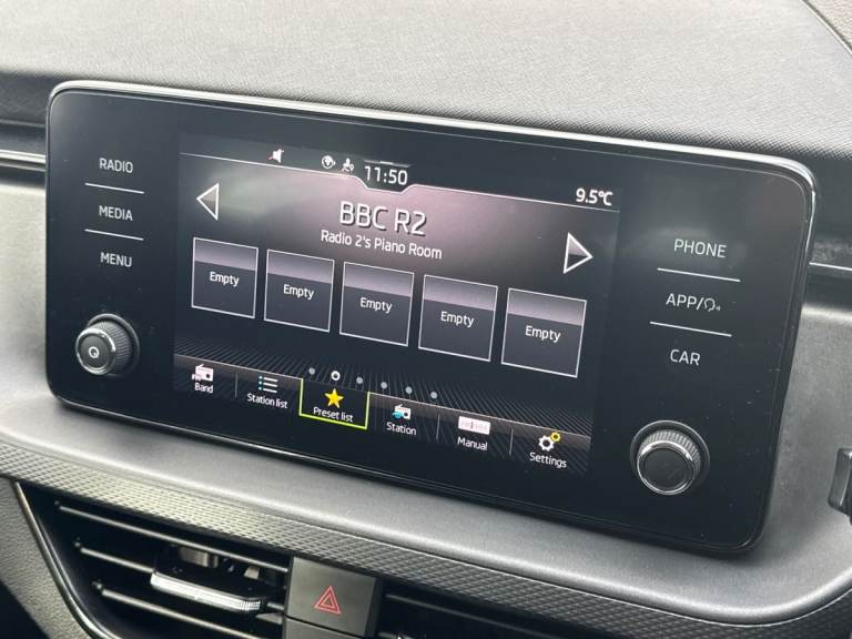 ..Bluetooth system, Easy light assist, Front assist system, Lane assist, Multi function trip computer, PAS, Rain and light assist with auto dimming rear view mirror, Speed limiter, 2 USB - C ports, 8 loudspeakers, Bolero radio with 8'' touchscreen display, DAB Digital radio, Body colour door mirrors and handles, Chrome grille surround, Electrically adjustable and heated door mirrors, Front and rear electric windows, Tinted windows, 12V Accessory socket in centre console, Chrome inner door handles, Cloth upholstery, Decor strip on dashboard and door panel, Front centre armrest with stitching, Front head restraints, Glasses storage in roof liner, Height adjustable drivers seat, Height adjustable passenger seat, Instrument cluster with chrome painted decor ring, ISOFIX for rear passenger seat, Leather gearknob and handbrake lever, Reading lights for driver and front passenger, Sun visor with make up mirror for front passenger, Third rear headrest, Umbrella, 3x3 point rear seatbelts, Curtain airbags, Emergency call and proactive services, Front head and side airbags, Hill hold control, Passenger airbag switch off function, Seat belt reminder for all seats, Two tone horn, Alarm, Anti-theft wheel bolts, SAFE function for remote central locking, Temporary space saver wheel