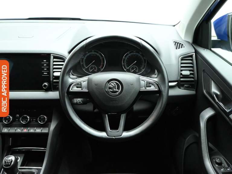 RAC Multi-Point Inspection and Service History - Last At 58k The Karoq Leaves A Powerful Impression With Its Refined Exterior Styling, Visit Us In-Store, Explore Its Features, And Take It For A Test Drive That Captures Attention From Every Angle. - Fitted With Extras Including, Cloth Upholstery And Finished In Energy Blue Paint Standout Key Features Include Gps Satellite Navigation System, Boasting Intuitive Sat Nav Functionality For Seamless Journeys. As You Step Inside Youll Discover An Impressive Array Of Technology, Including Apple CarPlay, Android Auto, Collision Warning System, Front and Rear Radar Type Parking Sensors, Rain Sensing Windscreen Wipers, Radar Guided Adaptive Cruise Control, Collision Warning System. Keep Everyone Onboard Entertained Thanks To Features Such As Voice Control For Media Functions, Bluetooth Wireless SmartPhone Connectivity, Wifi Hotspot To Keep You Connected (Subscription And Data Plan Charges May Apply), DAB Digital Radio For A Myriad Of Stations To Suit Your Mood. Relax In The Ultimate Comfort Thanks To Dual-Zone Climate Control, Air Conditioning, Electrically Foldable Door Mirrors, Refrigerated Glove Box, Anti Dazzle Rear View Mirror, Isofix, Front And Rear Electric Windows, Rear Privacy Glass. On The Exterior Youll Be Sure To Notice The 17 Inch Alloy Wheels. Also Fitted With Front Fog Lights, Engine Start/Stop Fuel Saving Technology, Electric Hill Holder, Tyre Pressure Monitoring System., Date Of First Registration June 2020. - Drive...