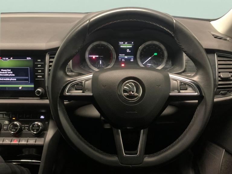 Discover the Skoda Kodiaq a stylish black SUV thats ready for family adventures with spacious 7-seat comfort. Enjoy stress-free parking with a reversing camera and front and rear sensors, while the light package keeps every journey bright. Stay connected with Apple CarPlay and SmartLink, and find your way easily using built-in sat nav. Keyless start, cruise control, climate control, and Bluetooth add premium touches to every drive. A true all-rounder with impressive practicality and modern technology. 3 services recorded, last serviced on 10/01/2026 at 43,785 miles. MOT to 16/01/2027. Visit our website for service history, online valuation, full vehicle specification plus multiple images. This vehicle is VAT qualifying. Any feature/option specified here is from 3rd party data. We cannot guarantee the accuracy of any specification supplied by a 3rd party. We recommend that you physically check the specification of the vehicle on site prior to purchase. This information does not form part of the buying contract. Terms & Conditions apply. We have over 2,000 cars available from our 10 national branches, check our website to see all our stock. Our Trustpilot rating is 4.4/5 with over 9,000 reviews.