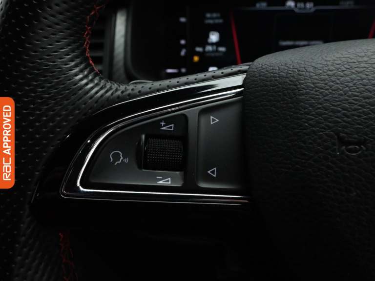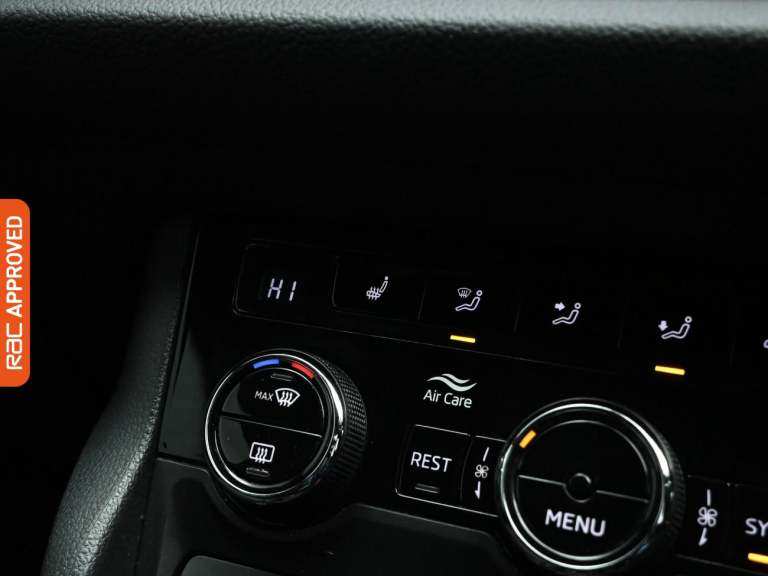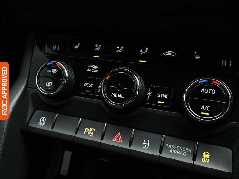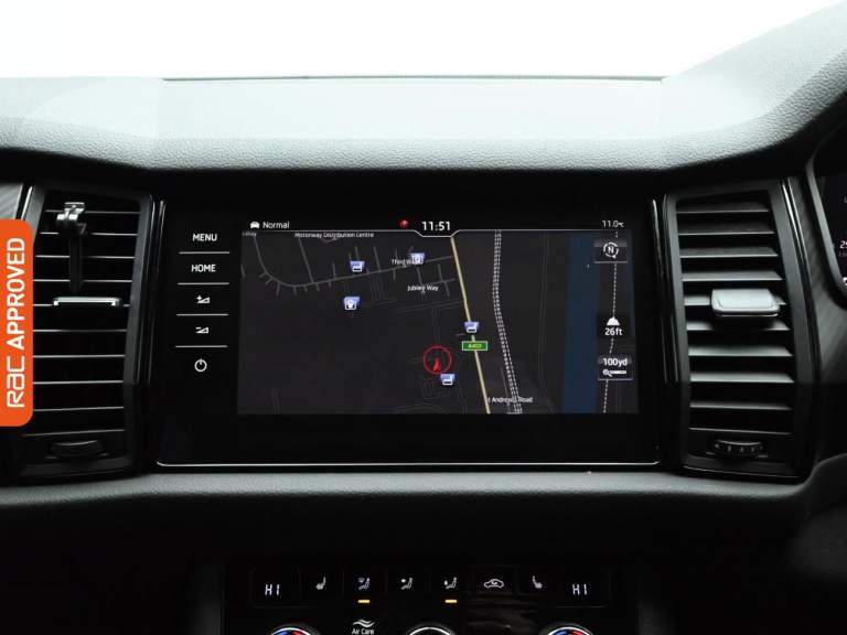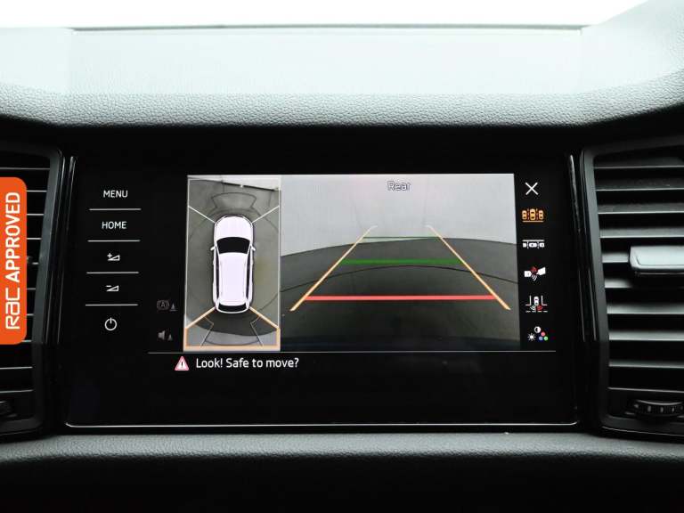 RAC Multi-Point Inspection and Verified Service History Turn Every Family Drive Into A Voyage Of Discovery With The Robust And Spacious Skoda Kodiaq, Immerse Yourself In Its Features In-Store And Embark On A Test Drive Adventure. - Enjoy An Upgraded Driving Experience With This Vehicle Thanks To The £1990 Of Factory Fitted Extras, These Include, 360 Degree Camera, Luxurious Suede And Leather Upholstery, Interior Carbon Fibre Trim, Heated Steering Wheel, Leather Sport Multifunctional Steering Wheel And Finished In Race Blue Metallic Paint Standout Key Features Include Gps Satellite Navigation System, Boasting Intuitive Sat Nav Functionality For Seamless Journeys. As You Step Inside You Will Find A Variety Of Technologies, Including Apple CarPlay, Android Auto, Cruise Control, Rain Sensing Windscreen Wipers, Dusk Sensing Automatic Headlights. Keep Everyone Onboard Entertained Thanks To Features Such As Voice Control For Media Functions, Bluetooth Wireless SmartPhone Connectivity, Wifi Hotspot To Keep You Connected (Subscription And Data Plan Charges May Apply), DAB Digital Radio For A Myriad Of Stations To Suit Your Mood. Relax In The Ultimate Comfort Thanks To Keyless Entry, Keyless Start, Dual-Zone Climate Control, Air Conditioning, Electrically Foldable Door Mirrors, Refrigerated Glove Box, Anti Dazzle Rear View Mirror, Isofix, Front And Rear Electric Windows, Rear Privacy Glass, Seven Seats MPV. Also Fitted With Front Fog Lights, Engine Start/Stop Fuel Saving Technology,...