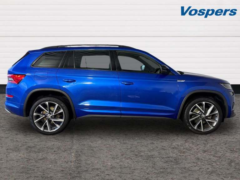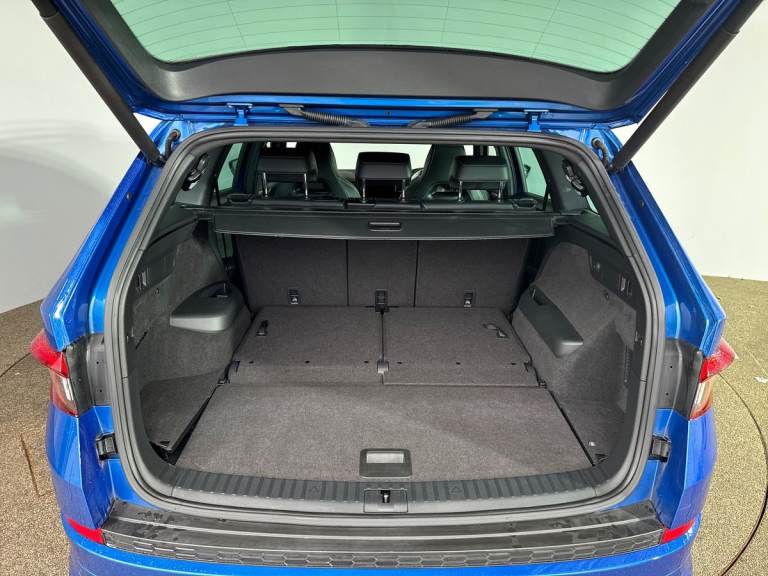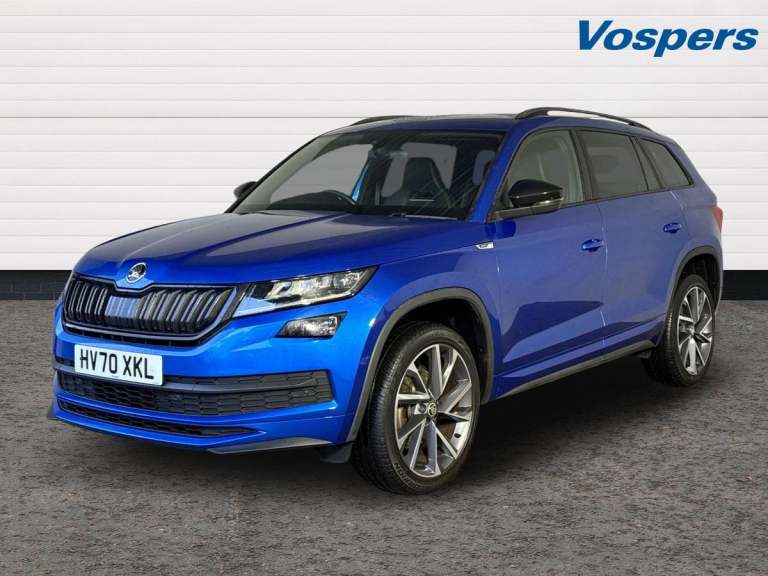 .Key Features; DCC - Dynamic Chassis Control Electrically adjustable, heated front seats with memory function Rear view camera Electric Tailgate Space saver spare wheel Full Skoda service history Ownership: 1 Owner This 2020 Skoda Kodiaq TDI SportLine in Race Blue Metallic presents an exceptional opportunity with its remarkably low mileage of just 23,527 miles. This Euro 6 compliant, four wheel drive model boasts a powerful 2.0 litre diesel engine and offers versatile seating for seven occupants. The SportLine trim enhances its appeal, featuring a Virtual Cockpit for a modern driving display and Dynamic Chassis Control (DCC) allowing for personalised drive mode selection. Convenience is further elevated by electrically adjustable front seats with a memory function and a rear view camera integrated with parking assistance. The Kodiaq TDI SportLine is designed for those seeking a spacious and capable family vehicle. Its low insurance group rating makes it an economical choice for many drivers. The inclusion of features like the Virtual Cockpit and DCC highlights how this particular Kodiaq offers a more refined and customisable driving experience compared to other vehicles in its class. With its combination of practicality, advanced technology, and impressive condition, this Skoda Kodiaq is a compelling option..Bluetooth system, Colour multifunction trip computer, Columbus satellite navigation with 9.2'' touch screen and integrated Wi-Fi + WLAN, Digital voice enhancement, ECO Stop/start function, Exterior temperature indicator, Map care, Progressive power assisted steering, SmartLink plus, Speed limiter, Sports dials, Tailgate unlocking from outside, Bolero Radio, DAB Digital radio, DVD System, USB and SD card connectivity, Aero front windscreen wipers with intermittent function, Aero rear window wiper, Auto dimming rear view mirror, Automatic activation of hazard warning lights, Black electric window control buttons, Black roof rails and door mirrors with radiator grille and window surrounds, Black wheel arch surrounds, Body colour bumpers, Body colour door handles, Chrome exhaust tailpipe, Electric front and rear windows, Electrically adjustable/heated/foldable and auto dimming door mirrors with memory function, Front door steps with SportLine logo, Full LED Headlights with adaptive front light system and LED daytime running lights, Headlight washers, Heated rear window, LED front fog lights with static cornering light function, LED rear fog light, LED