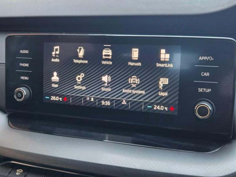 1 USB-C Port in Rear View Mirror, 2 USB-C Ports, 2 USB-C Ports in Rear of Front Centre Armrest, Bluetooth, DAB Radio, Pro-Active Services, Remote Access, Smartlink - Includes Android Auto and MirrorLink, Speakers x8, Swing Radio with 8.25in Touchscreen, Wireless Smartlink for Apple CarPlay, e-Call, Cruise Control with Speed Limiter, Rear Parking Sensors with Manoeuvre Assist, Tyre Pressure Monitor, 16in Alloy Wheels - Velorum, Black Roof Rails, Black Window Surrounds, Body Coloured Door Mirrors and Door Handles, Chrome Grille Surround, Electrically Adjustable and Heated Door Mirrors, Front and Rear Electric Windows, Heated Rear Windscreen, Ice Scraper in Fuel Filler Cap, Rear Spoiler, Tyre Repair Kit, High Level 3rd Rear Brake Light, LED Front Fog Lights, LED Headlights with LED Daytime Running Lights, LED Rear Lights, Light and Rain Sensors, 2-Spoke Leather Multifunction Steering Wheel, 4 Foldable Roof Handles, Aero Front Windscreen Wipers with Intermitted Function, Aluminium Decorative Inserts, Auto Dimming Rear View Mirror, Boot Lid Release from Inside Vehicle, Climatronic Dual-Zone Air Conditioning, Door Handles - Interior in Chrome, Front Centre Armrest, Glasses Storage Compartment, Glove Compartment - Cooled and Illuminated, Height Adjustable for Front Seats, Keyless Start-Stop, Leather Gear Shift Lever, Luggage Compartment Light x2, Lumbar Support for Front Seats, Parcel Shelf - Rolling, Rear Fog Light on One Side, Sun Visors with Mirror, Three Rear Head Rests, Ticket