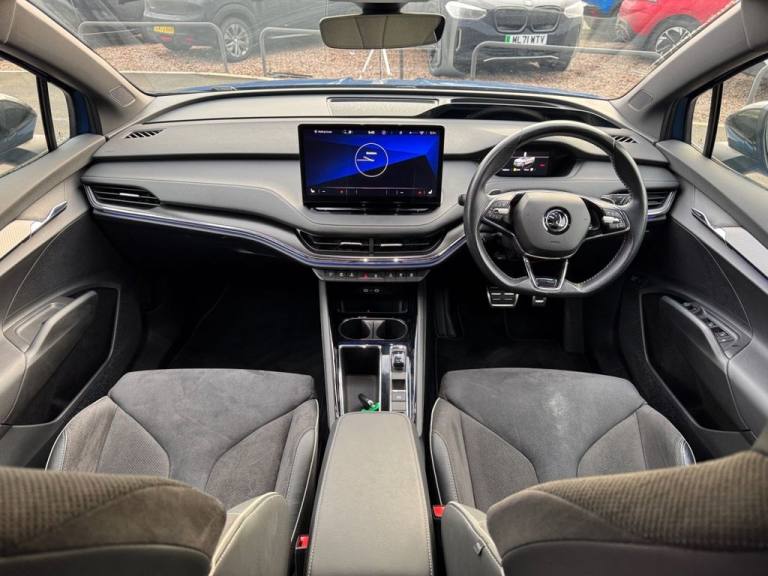 With a national parts and labour warranty, a pre sale service, and MOT, Finished in Blue metallic, 1/2 Black leather seats, Electric & heated front seats, Wireless charger, Heated steering wheel, Adaptive cruise control, Apple/Android, DAB, USB, Bluetooth, Auto lights, Sat nav, Dual climate, Traffic sign recognition, Lane assist, Power tailgate, Retractable tow bar, Blind spot, Power folding mirrors, Heated mirrors, 360 camera, Front & rear parking sensors, Privacy glass, Isofix, 20" alloys, 2 keys, 1 Owner, 74,000 miles from new, AA Cars 5 day driveaway insurance available and free 12 months AA Cars basic breakdown cover with this car. Low rate finance available on this vehicle. Finance calculator and no obligation application on our website - [Website URL removed] Apply online today. Part exchange welcome and all major credit/debit cards accepted. 5 star extended warranty options available. We do not charge ANY admin fees for our sales. Only third party finance fees are passed on, Any finance arrange by ourselves will incur No admin fees. Open 7 days a week..360 Camera System , Lane Assist, Power Folding Mirrors, Wireless Charger, Apple / Android, Towbar Preparation, Race Blue, Parking Package Plus, Comfort Seat Package, Towbar Electrically Retractable, 125 KW DC Charging, 12V Socket in Boot, 13in Touchscreen Display, 20in Alloy Wheels - Vega Anthracite Metallic, ABS - Anti-Lock Braking System, Additional Body Cover on Wheel Arch and Side Sill, Airbag - Front Side with Curtain Airbags and Central Interaction Airbag, Alarm with Interior Monitoring - Back Up Horn and Towing Protection, Aluminium Pedals, Anti-Theft Locking Wheel Bolts, Black Decorative Trims, Black Roof Rails, Bluetooth, Care Connect - eCall, Child Safety Lock - Manual, Climate Package, Convenience Package, Cruise Control with Speed Limiter, DAB Radio, Daytime Running Lights - LED, Door Mirrors - Heated - Electronically Adjustable - Folding and Auto Dimming with Boarding Spots and Welcome Logo, Drive Sport Package, Driver and Front Passenger Airbags with Front Passenger Airbag Deactivation, Dynamic Headlight Range Control with Cornering Light Function, Front Assistant including Automatic Braking Function, Front and Rear Electric Windows, Gesture Control, Height Adjustable Driver and Front Passenger Seat - Manual, ISOFIX Child Seat Fittings on Outer Rear Seats with Top Tether, ISOFIX Child Seat Preparation - Front Passenger, Interior Package - SportLine, LED Ambient Lighting, Lane Assist, Light Assistant, Light and Rain Sensor with Auto-Dimming Rear View Mirror, Light and View Package, Luggage Compartment - Boot Lighting, Manual Lumbar Support for Front Seats, Mode 3 Cable - 32A - 6 Metres, Parking Package, Parking Sensors - Rear, Power Steering, Radiator Grille - Black Gloss, Rear Spoiler, Rear Window Wiper with Washer System and Intermittent Control, Remote Central Locking with SAFE Function, SKODA Lettering on Tailgate in Black, Satellite Navigation System, Seatbelt Reminder - Visual and Acoustic, Shock Absorption in Front and Rear, Side and Rear Windows in Heat Insulating Glass, Single Tone Horn, Skoda Connect - Infotainment Online - 3 years, Skoda Connect - iV Remote Services, Sliding Boot Cover, Speakers x8, Sport Bumpers, Sports Seats - Front, Standard Electronic Engine Sound, Suspension - Sports, Three Point Seatbelt in Front with Pretensioner - Lap Belt Pretensioner and Height Adjustment, Three Rear Head Restraints, Tyre Pressure Monitor, USB-C Ports, Umbrella, Virtual Cockpit, Voice Control, Washer Fluid Level Indicator, Wifi Hotspot for