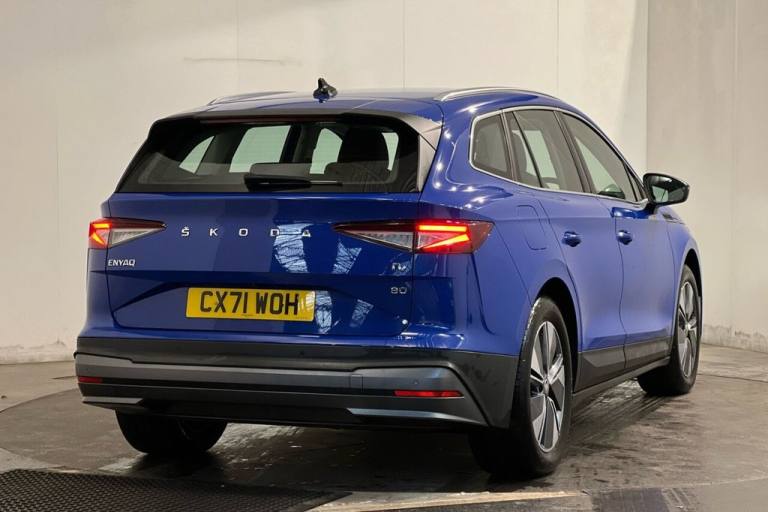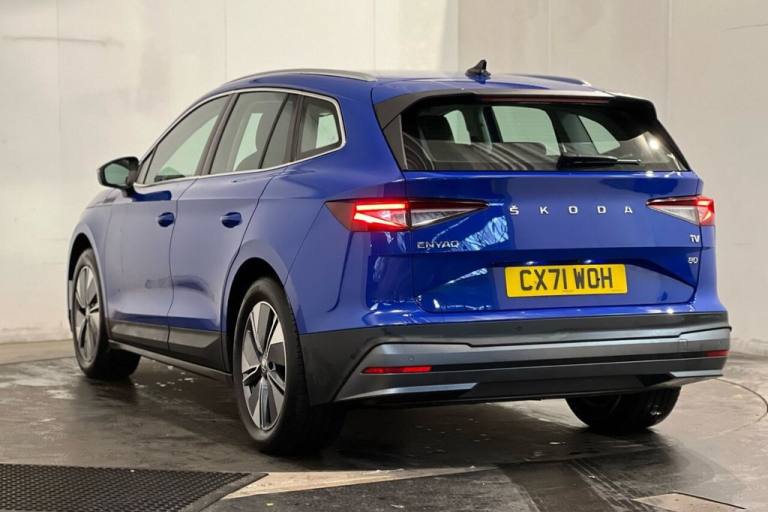 This 2021 Skoda Enyaq 80 is a superb example, having been owned by just one person from new and boasting a clear vehicle history check. As an electric vehicle, it offers an impressive battery total capacity of 82 kWh, providing a maximum range of 331 miles when new. Charging at home on a 7kW charger will take approximately 13 hours for a full charge, while rapid public charging can take you from empty to 80% in just 1 hour and 14 minutes. This Enyaq also comes with an MOT valid until October 2026, giving you peace of mind. Inside, youll find the desirable Interior Package Suite, enhancing comfort and style. The vehicle is equipped with Basic LED Headlights featuring Daytime Running Lights and automatic range control, complemented by a Light and Rain Sensor and an auto dimming rear view mirror. For your comfort, it includes Dual Zone Climate Control and the Drive Package, which notably features a heated steering wheel. The Enyaq 80 also offers a large boot space, making it practical for all your needs. These features collectively demonstrate how this Skoda Enyaq 80 stands out, offering a refined and capable electric driving experience. Lifetime warranty available on this car, plus a £1,000 finance contribution when you part exchange. Voted UK Car Supermarket of the Year two years running, we offer 0% finance, part exchange, and lifetime warranties across our entire range. Every car is thoroughly inspected before sale and comes with a full history check, so you can buy with complete peace of mind. Buy with confidence on our best finance rates. Proud winners of the CarGurus Top-Rated Dealer 2022 and the MotoNovo Extra Mile Award. .12V Socket in Boot, 13in Touchscreen Display, 19in Alloy Wheels - Regulus Anthracite, 2-Spoke Leather Heated Multi-Function Steering Wheel with DSG Paddles, 50 KW DC Charging, ABS - Anti-Lock Braking System, Air Conditioning - Climate Control Dual Zone, Airbag - Front Side with Curtain Airbags and Central Interaction Airbag, Alarm with Interior Monitoring - Back Up Horn and Towing Protection, Anti-Theft Locking Wheel Bolts, Basic LED Headlights with LED Daytime Running Lights and Headlight Range Control, Bluetooth, Care Connect - eCall, Child Safety Lock - Manual, Chrome Pack, Cruise Control with Speed Limiter, DAB Radio, Door Mirrors - Heated - Electronically Adjustable - Folding and Auto Dimming with Boarding Spots and Welcome Logo, Drive Package, Driver and Front Passenger Airbags with Front Passenger Airbag Deactivation, Energy Blue, Fabric - Artificial Leather - Grey with Stitching, Front and Rear Electric Windows, Front Assistant including Automatic Braking Function, Gesture Control, Height Adjustable Driver and Front Passenger Seat - Manual, Interior Package - Loft, Interior Package - Suite, ISOFIX Child Seat Fittings on Outer Rear Seats with Top Tether, ISOFIX Child Seat Preparation - Front Passenger, Keyless Start-Stop, Lane Assist, LED Ambient Lighting, Light and Rain Sensor with Auto-Dimming Rear View Mirror, Light Assistant, Luggage Compartment - Boot Lighting, Manual Lumbar Support for Front Seats, Mode 3 Cable - 32A - 6 Metres, Parking Package, Parking Sensors - Rear, Power Steering, Rear Lights - LED, Rear Spoiler, Rear Window Wiper with Washer System and Intermittent Control, Remote Central Locking with SAFE Function, Satellite Navigation System, Seatbelt Reminder - Visual and Acoustic, Side and Rear Windows in Heat Insulating Glass, Single Tone Horn, Skoda Connect - Infotainment Online - 3 years, Skoda Connect - iV Remote Services, Sliding Boot Cover, Speakers x8, Standard Electronic Engine Sound, Three Point Seatbelt in Front with Pretensioner - Lap Belt Pretensioner and Height Adjustment, Three Rear Head Restraints, Tyre Pressure Monitor, Umbrella, USB-C Ports, Virtual Cockpit, Voice Control, Washer Fluid Level Indicator, Wifi Hotspot for Up To 8 Devices, Windscreen in Heat Insulating Glass, Wireless Smartlink