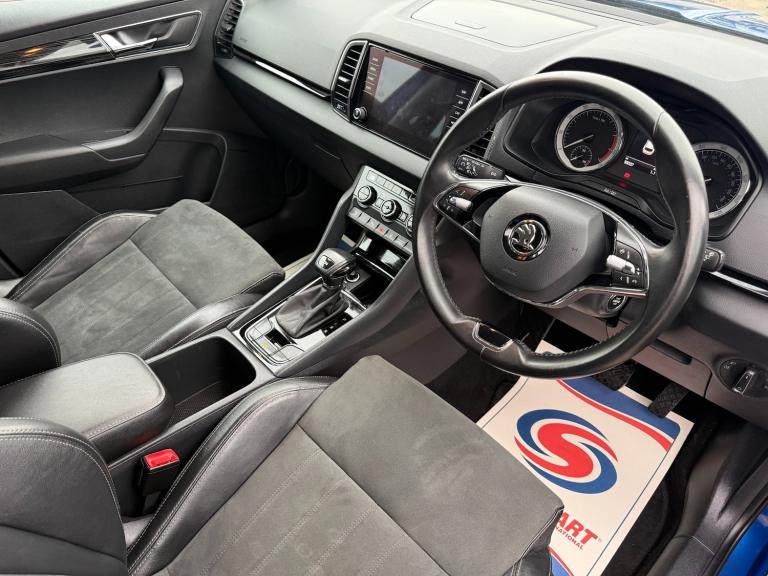 2021 Skoda Karoq SE-L DSG 1.5 Petrol Automatic 35,000 Miles 12 Months MOT + Freshly Serviced Full Vosa History ULEZ Compliant Top Spec Car - Half leather Half Suede Seats, Apple Car Play, Android Car Play, heated seats, rear view camera, parking sensors front and rear, sat navigation, touch screen infotainment, car play, multifunctional steering wheel, electric windows, electric mirrors, ac climate control, cruise control, start stop system, privacy glass, 18 inch alloy wheels, cat n, excellent condition. 30 day warranty included. Extended warranty options available (3, 6 and 12 Months). Nationwide Delivery.