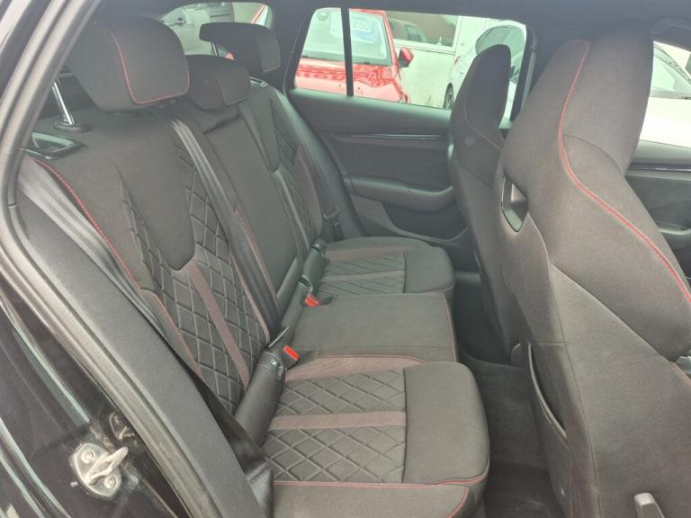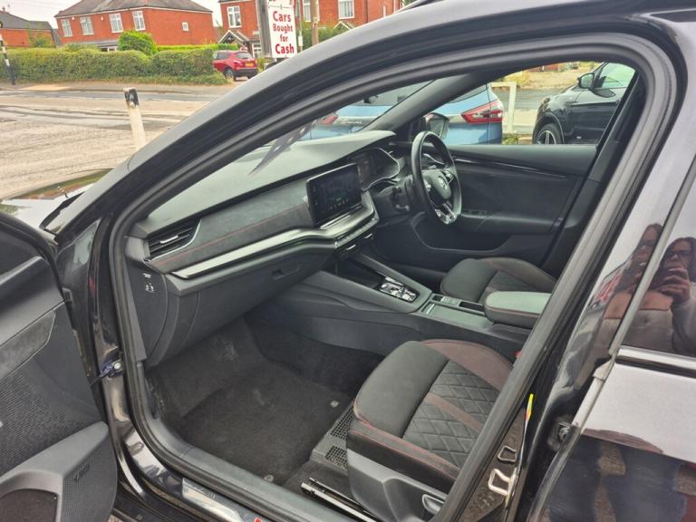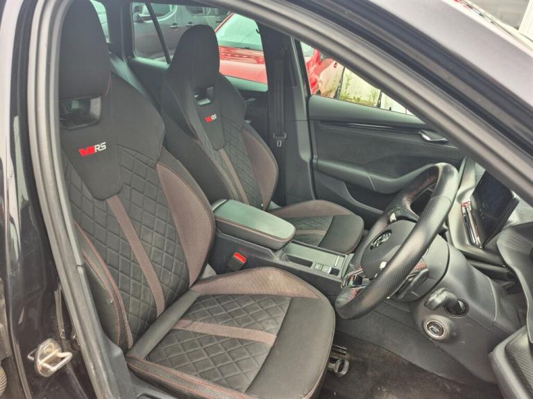 Insurance Group 24, Comfort / Convenience 1x USB Type C port in rear view mirror (charging only) 2x USB Type C ports in rear of front centre armrest (charging only) 3 rear headrests 4 foldable roof handles Aero front windscreen wipers with intermittent function Alcantara padded dash panel with contrast stitching Aluminium pedals Auto dimming rear view mirror Black headlining Blind spot detection+electrically adjust,heated,folding,driver side auto-dimming+passenger tilt by reversing door mirrors with memory+boarding spots Bluetooth system Carbon optic decorative inserts Charging socket cover on front left fender Chrome inner door handles Cloth upholstery Colour multifunction trip computer Columbus satellite navigation with 10"" touchscreen display Drive mode selector E mode button for electric/hybrid drive Electric front and rear windows Electronic parking brake ESC including ABS, EBV, MSR, ASR, EDS, HBA, DSR Front and rear disc brakes Front and rear stabilizers Front assist system Front centre armrest Front head restraints Gloss black air vent surrounds Heated front seats Heated rear windscreen Height adjustable driver and passenger seat with lumbar support Hill hold control Hill start assist Illuminated air conditioned glovebox Leather trimmed gearshift lever Mechanical rear seat release Parcel shelf - rolling Progressive dynamic steering Rain and light sensors Rear privacy glass Rear window wiper Red brake calipers Satin black textured with artificial stiching in dash board pads Smartlink (includes android auto and mirrorlink) Speed limiter Sport button for hybrid drive delivering maximum system performance Sports suspension Storage compartment for charging cables under the luggage compartment mat Sunglasses storage Three spoke leather sports multifunction steering wheel with paddles Ticket holder Turn Assist Umbrella in door panel Unique decorative door sills front and rear Unique iV instrument panel Unsplit rear bench seat and split folding backrest Virtual Cockpit - 10.25"" digital display Voice control system Wireless SmartLink for Apple Car Play Entertainment 2x USB Type C ports (for charging and data transfer) DAB Digital radio Swing radio with 8.25"" touchscreen Exterior / Styling 19"" Altair anthracite alloy wheels Black roof rails Body colour door handles Chrome exhaust tailpipes Door sills with vRS logo Exterior gloss black sports styling including front grille, side strip, window surrounds, door mirror and badging Full LED Matrix headlights with AFS, rear LED lights and dynamic indicators and cornering front fog lights High level third brake light Ice scraper in fuel cap LED interior light pack - Octavia Rear fog light on one side Rear spoiler Tyre repair kit Unique iV badge on tailgate Safety / Security 3 point front/outer rear seatbelts+pre-tensioners Alarm with interior monitoring, tilt sensor and back up horn Automatic door unlocking in case of crash Automatic fuel cut off in case of crash Automatic warning lights in case of emergency braking Door locks with immobiliser Drivers knee airbag Emergency call and proactive services Head and curtain airbags ISOFIX on front passenger seat and outer rear seats Keyless entry and start/stop including rear doors Passenger airbag deactivate switch Remote central locking Two tone horn Tyre pressure monitor Visual and acoustic seat belt reminder Warning reflectors in front door Comfort / Convenience 1x USB Type C port in rear view mirror (charging only) 2x USB Type C ports in rear of front centre armrest (charging only) 3 rear headrests 4 foldable roof handles Aero front windscreen wipers with intermittent function Alcantara padded dash panel with contrast stitching Aluminium pedals Auto dimming rear view mirror Black headlining Blind spot detection+electrically adjust,heated,folding,driver side auto-dimming+passenger tilt by reversing door mirrors with memory+boarding spots Bluetooth system Carbon optic decorative inserts Charging socket cover on front left fender Chrome inner door handles Cloth upholstery Colour multifunction trip computer Columbus satellite navigation with 10"" touchscreen display Drive mode selector E mode button for electric/hybrid drive Electric front and rear windows Electronic parking brake ESC including ABS, EBV, MSR, ASR, EDS, HBA, DSR Front and rear disc brakes Front and rear stabilizers Front assist system Front centre armrest Front head restraints Gloss black air vent surrounds Heated front seats Heated rear windscreen Height adjustable driver and passenger seat with lumbar support Hill hold control Hill start assist Illuminated air conditioned glovebox Leather trimmed gearshift lever Mechanical rear seat release Parcel shelf - rolling Progressive dynamic steering Rain and light sensors Rear privacy glass Rear window wiper Red brake calipers Satin black textured with artificial stiching in dash board pads Smartlink (includes android auto and mirrorlink) Speed limiter Sport button for hybrid drive delivering maximum system