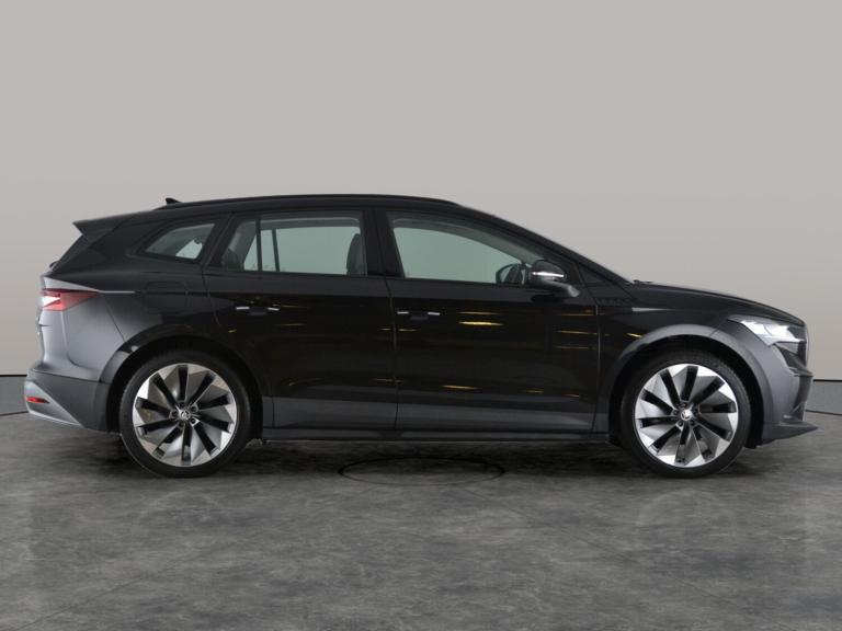 Experience the future with this sleek black Skoda Enyaq SUV, equipped with stunning 21in alloy wheels and luxurious half-leather seats. Stay connected with Apple CarPlay, integrated Sat Nav, and in-car Wifi. Enjoy the clarity of LED headlights and drive with confidence thanks to Lane Departure Warning, Cruise Control, and Traffic Sign Recognition. Dual zone climate control and Bluetooth audio streaming make every journey comfortable and entertaining. Stylish, spacious, and advanced your next electric adventure awaits. 2 services recorded, last serviced on 07/01/2026 at 34,186 miles. MOT to 25/01/2026. Visit our website for service history, online valuation, full vehicle specification plus multiple images. This vehicle is VAT qualifying. Any feature/option specified here is from 3rd party data. We cannot guarantee the accuracy of any specification supplied by a 3rd party. We recommend that you physically check the specification of the vehicle on site prior to purchase. This information does not form part of the buying contract. Terms & Conditions apply. We have over 2,000 cars available from our 10 national branches, check our website to see all our stock. Our Trustpilot rating is 4.4/5 with over 9,000 reviews.