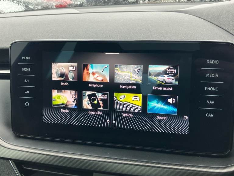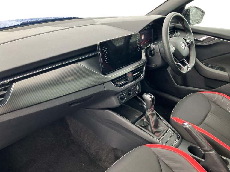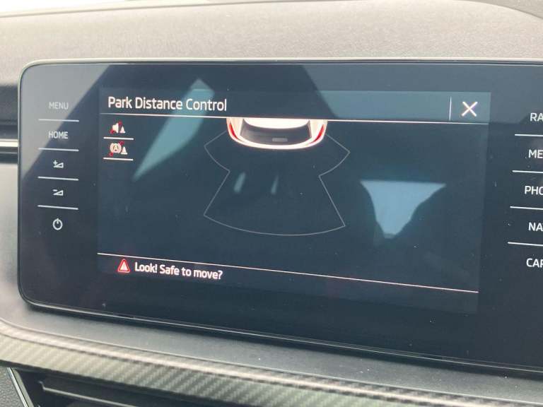 ..Amundsen satellite navigation with 9.2'' touchscreen display, voice control, virtual cockpit and web radio, Bluetooth system, E-call, Front assist system, Gesture control, PAS, Service indicator, Speed limiter, Virtual cockpit with 10.25'' display, Wireless SmartLink for apple car play, android auto and mirrorlink, 8 Speakers, Auxiliary input socket, DAB Digital radio, Black door mirrors, Black radiator grille, Black rear diffuser, Body colour bumpers, Body colour door handles, Body colour roof spoiler, Boot lettering in black, Chrome grille surround, Dimming rear view mirror with black surround, Electrically adjustable and heated door mirrors, Front and rear electric windows, Front sport bumper, Full LED headlights with adaptive front light system and front cornering fog lights, Headlight range control, Heated rear window, KAMIQ Door sills, LED daytime running lights, LED rear lights - low functionality, Light sensors, Monte carlo plaque, Panoramic sunroof with black roof rails, Privacy glass, Rear fog lights, Rear side wing doors, Rear wiper, 12V Accessory socket in centre console, 3 seat bench in 2nd row, Aluminium pedals, Black ceiling for black/beige interior, Chrome inner door handles, Cloth upholstery, Front head restraints, Glove compartment with illumination, Ice scraper, Isofix child seat fittings on outer rear seats, ISOFIX on front passenger seat, Leather gear lever, Manual lumbar support for front seats, Rake/reach adjustable steering wheel, Reading lights, Single front passenger seat, Sports seats, Sun visors with illumination on front passenger, Textile floor mats, Third rear headrest, Top tether for front passenger seat, Umbrella in driver's door, 3x3 point rear seatbelts, Airbags - driver and front passenger, ESP, Front passenger airbag deactivation switch, Front side airbags with curtain airbags, Hill hold control, Manual parking brake, Manual rear child locks, One tone horn, Rear disc brakes, Seatbelt reminder for driver an co-driver, Traction control, Tyre pressure monitor, Anti-theft alarm system with interior monitoring, backup horn, towing protection and remote central locking with SAFE system, Anti-theft wheel bolts, Electronic engine immobilizer, Chrome air vent surrounds, 18'' Vega alloy wheels in black