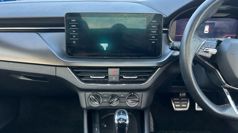 A stylish, well-equipped Kamiq Monte Carlo with modern tech and premium comforts. Ideal if you want sporty style and smart features in a compact SUV. The 2022 koda Kamiq 1.0 TSI 110 Monte Carlo DSG delivers a premium feel in a compact SUV with sporty styling and thoughtful technology throughout. Inside the cabin you'll find a digital driver display, touchscreen infotainment with built-in navigation, Apple CarPlay + Android Auto, and quality seat upholstery with Monte Carlo accents. Comfort is enhanced by dual-zone automatic climate control, heated front seats, leather-trimmed multifunction steering wheel and multiple USB-C ports. Convenience features include keyless entry + start, rear parking sensors with reversing camera, electric folding + heated mirrors, and a generous boot with practical split-fold rear seats. On the outside the Monte Carlo trim brings distinctive gloss-black alloy wheels, sporty body trim, LED headlights and privacy-tinted rear glass combining a dynamic appearance with everyday usability.
