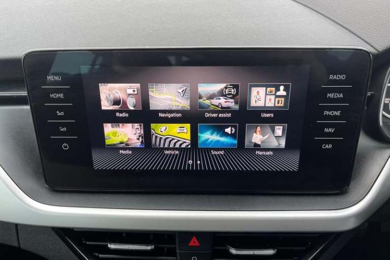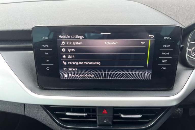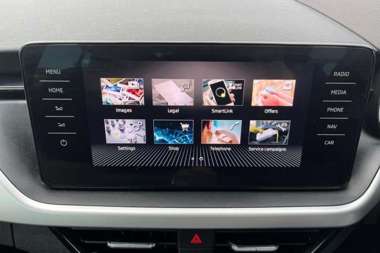 Amundsen satellite navigation with 9.2 glass colour touchscreen display, web radio, voice control and traffic sign recognition, Bluetooth system, E-call, Front assist system, Gesture control, PAS, Service indicator, Speed limiter, Wireless Smartlink for Apple CarPlay (wired for Android Auto), Body colour bumpers, Body colour door mirrors and handles, Chrome grille surround, Dimming rear view mirror with black surround, Electrically adjustable and heated door mirrors, Front and rear electric windows, Headlight range control, Heated rear window, LED rear lights - low functionality, LED third brake light, Light sensors, Privacy glass, Rain sensor, Rear fog lights, Rear side wing doors, Rear wiper, 12V Accessory socket in centre console, 3 seat bench in 2nd row, Chrome inner door handles, Cloth upholstery, Front head restraints, Glove compartment with illumination, Height adjustable driver and front passenger seats - manual, Ice scraper, Isofix child seat fittings on outer rear seats, ISOFIX on front passenger seat, Manual lumbar support for front seats, Rake/reach adjustable steering wheel, Reading lights, Single front passenger seat, Sun visors with illumination on front passenger, Textile floor mats, Third rear headrest, Top tether for front passenger seat, Umbrella in driver's door, 3x3 point rear seatbelts, Airbags - driver and front passenger, ESP, Front passenger airbag deactivation switch, Front side airbags with curtain airbags, Hill hold control, Manual parking brake,