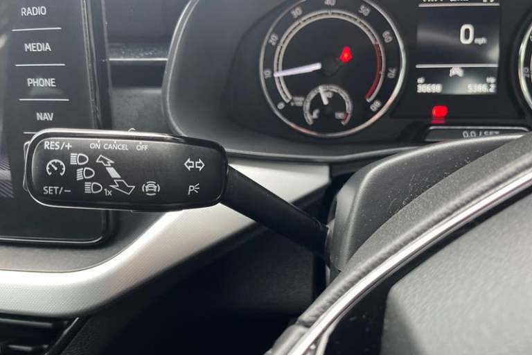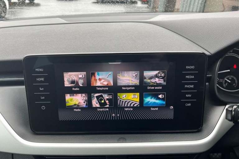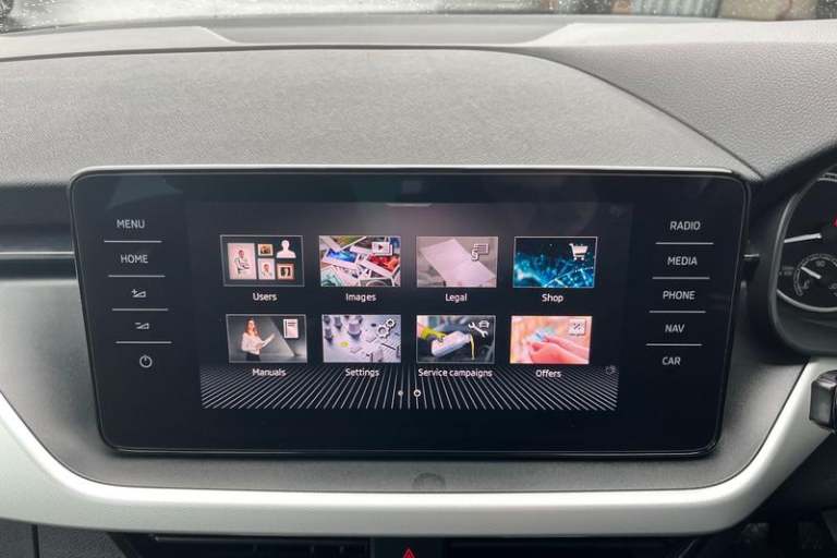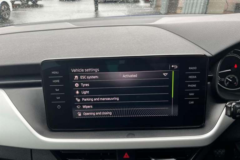Amundsen satellite navigation with 9.2 glass colour touchscreen display, web radio, voice control and traffic sign recognition, Bluetooth system, E-call, Front assist system, Gesture control, PAS, Service indicator, Speed limiter, Wireless Smartlink for Apple CarPlay (wired for Android Auto), Body colour bumpers, Body colour door mirrors and handles, Chrome grille surround, Dimming rear view mirror with black surround, Electrically adjustable and heated door mirrors, Front and rear electric windows, Headlight range control, Heated rear window, LED rear lights - low functionality, LED third brake light, Light sensors, Privacy glass, Rain sensor, Rear fog lights, Rear side wing doors, Rear wiper, 12V Accessory socket in centre console, 3 seat bench in 2nd row, Chrome inner door handles, Cloth upholstery, Front head restraints, Glove compartment with illumination, Height adjustable driver seat, Height adjustable front passenger seat, Ice scraper, Isofix child seat fittings on outer rear seats, ISOFIX on front passenger seat, Manual lumbar support for front seats, Rake/reach adjustable steering wheel, Reading lights, Single front passenger seat, Sun visors with illumination on front passenger, Textile floor mats, Third rear headrest, Top tether for front passenger seat, Umbrella in driver's door, 3x3 point rear seatbelts, Airbags - driver and front passenger, ESP, Front passenger airbag deactivation switch, Front side airbags with curtain airbags, Hill hold control, Manual parking
