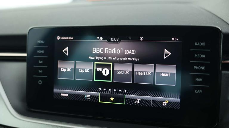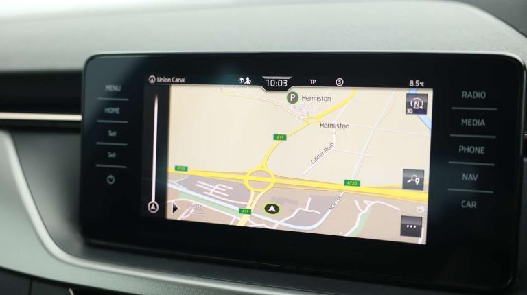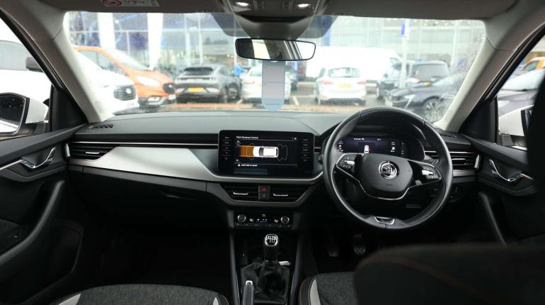 .The Skoda Kamiq 1.0 TSI 110 SE L Executive 5dr is a compact SUV that blends practicality, technology, and refined design for everyday driving with a touch of sophistication. Equipped with the Virtual Cockpit and a 9.2'' glass touchscreen with Amundsen satellite navigation, this Kamiq keeps you connected and informed while making every journey effortless. Wireless Apple CarPlay and Android Auto, gesture control, and an 8-speaker DAB sound system enhance your in-car experience. Safety and convenience are at the forefront, with front and rear parking sensors, rear view camera, front assist system, hill hold control, driver and passenger airbags with curtain protection, and ISOFIX child seat fittings ensuring peace of mind. Dual-zone climate control, electrically adjustable and heated door mirrors, privacy glass, and a 3-seat rear bench add comfort for all passengers. On the outside, the Kamiq impresses with LED rear lights, body-coloured bumpers and mirrors, and chrome grille accents, giving it a modern, sleek appearance. Practical features like a rear wiper, 12V sockets, umbrella storage in the drivers door, and multiple USB and accessory points make everyday life easier. The Kamiq is perfect for those who want smart technology, safety, and style in a compact SUV..Amundsen satellite navigation with 9.2'' glass colour touchscreen display, voice control, virtual cockpit, web radio and traffic sign recognition, Bluetooth system, E-call, Front and rear parking sensors, Front assist system, Gesture control, PAS, Rear view camera, Service indicator, Speed limiter, Virtual cockpit with 10.25'' display, Wireless SmartLink for apple car play, android auto and mirrorlink, 8 Speakers, Auxiliary input socket, DAB Digital radio, Auto dimming rear view mirror, Body colour bumpers, Body colour door mirrors and handles, Chrome grille surround, Electric folding door mirrors, Electrically adjustable and heated door mirrors, Front and rear electric windows, Headlight range control, Heated rear window, LED rear lights - low functionality, Light sensors, Privacy glass, Rear fog lights, Rear side wing doors, Rear wiper, 12V Accessory socket in centre console, 3 seat bench in 2nd row, Chrome inner door handles, Dual zone climate control, Front head restraints, Glove compartment with illumination, Ice scraper, Isofix child seat fittings on outer rear seats, ISOFIX on front passenger seat, Manual lumbar support for front seats, Rake/reach adjustable steering wheel, Reading lights,