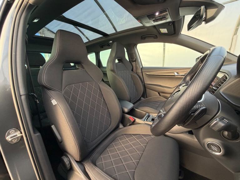 Here at Jim reids, we are proud to present this beautiful sportline Skoda Karoq finished in metalic grey- these have loads of amazing features and really are great value for money They have All wheel drive, through a lovely DSG automatic gearbox and are powered by a 2.0tsi 190 brake horse petrol engine - a really popular engine amonth the german hot hatches and larger vehicles known for its great delivery of torque. This one also has some loveley options such as power tailgate, heated seats, steering wheel, digital dash, reverse camera and cruise control - making it a really well specced family car. and with a full slide and tilting pan roof - complete with a black out blind the interior feels really spacious with plenty of light available on demand. For anymore info please get in touch - we are always happy to help