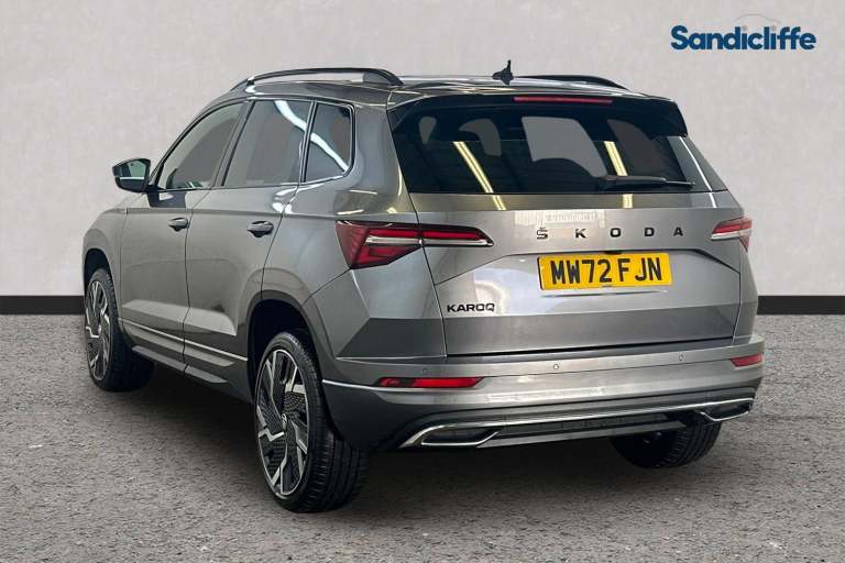 This 2022 Skoda Karoq TSI SportLine boasts an impressive service history, with its last service completed on 22nd December 2025 at 55,397 miles. This well maintained Euro 6 compliant 1.5 litre petrol engine offers a responsive drive, reaching 0-60mph in just 8.7 seconds. The SportLine trim level ensures a stylish appearance, and you'll appreciate the generous boot space, perfect for all your luggage and shopping needs. This exceptional vehicle boasts a wealth of premium features, including Satellite Navigation, Cruise Control, Bluetooth, Front & Rear Parking Sensors, Rear Parking Camera, Heated Seats, Sunroof, Apple CarPlay & Android Auto.The Skoda Karoq TSI SportLine stands out with its excellent fuel efficiency, indicated by its low CO2 emissions, making it a more economical choice for your journeys. The brisk acceleration of 0-60mph in 8.7 seconds demonstrates its performance capabilities, offering a more dynamic driving experience compared to many other vehicles in its class. This combination of practicality, performance, and efficiency makes the Karoq a compelling option.At Sandicliffe, we’re proud to be a family-owned business that’s been supporting motorists across the East Midlands for over 75 years representing BYD, Ford, Mazda and MG. Our commitment to quality, care, and community means you can buy with complete confidence, our technicians are highly qualified ensuring that our vehicles are meticulously prepared and maintained. Additionally, we offer a minimum 6-month MOT for added assurance. This car is Located at our Loughborough siteDerby RoadLoughboroughLE115HN