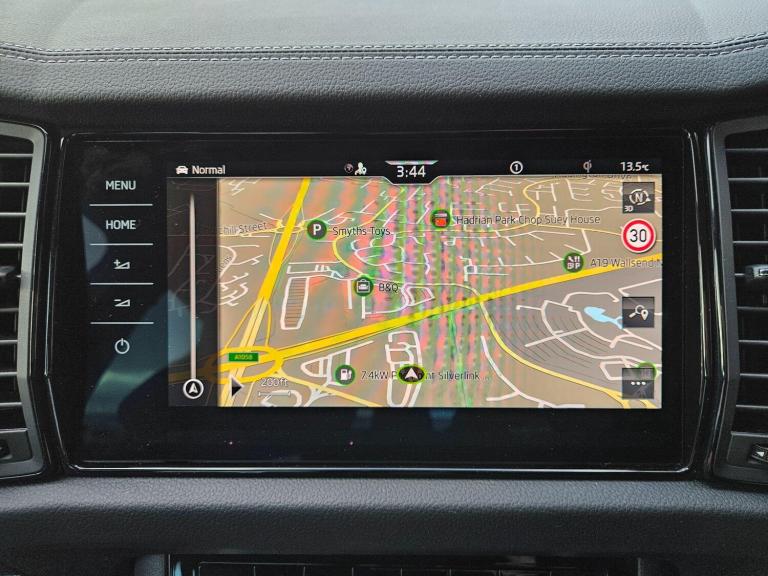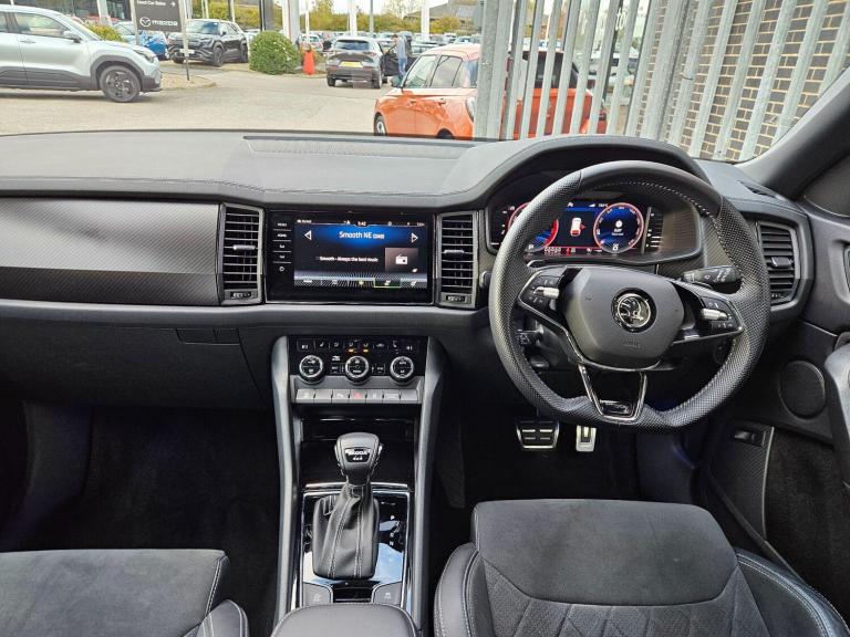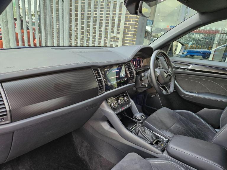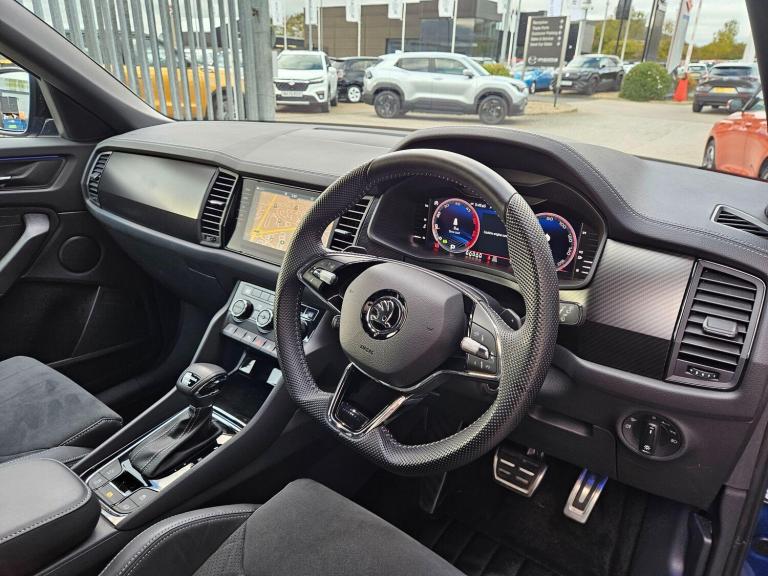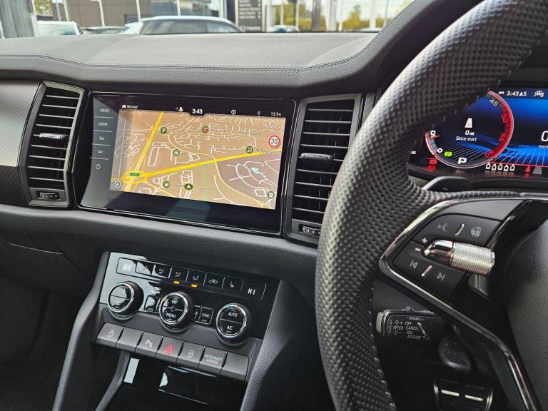 This 2022 Skoda Kodiaq TDI SportLine boasts exceptionally low mileage for its age, having covered just 21975 miles. This seven seat, four wheel drive SUV is powered by an efficient 2.0 litre diesel engine and meets Euro 6 emissions standards. It has had only one owner since new. Notable features include full LED Matrix headlights with adaptive and all weather lighting, dual zone climate control with a humidity sensor, and front and rear parking sensors complemented by a rear view camera for effortless parking. The electrically adjustable driver's seat also benefits from a memory function, ensuring your preferred driving position is always readily available.The SportLine trim level offers a compelling blend of performance and comfort, with the 0-60mph acceleration achieved in a brisk 7.6 seconds, demonstrating a responsive driving experience. These specifications indicate a superior level of performance and driver convenience compared to many other vehicles in its class. This Kodiaq is designed to provide a refined and practical experience for families and individuals alike, offering ample space and advanced technology.