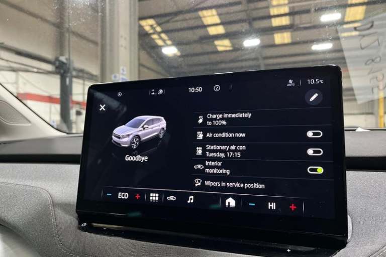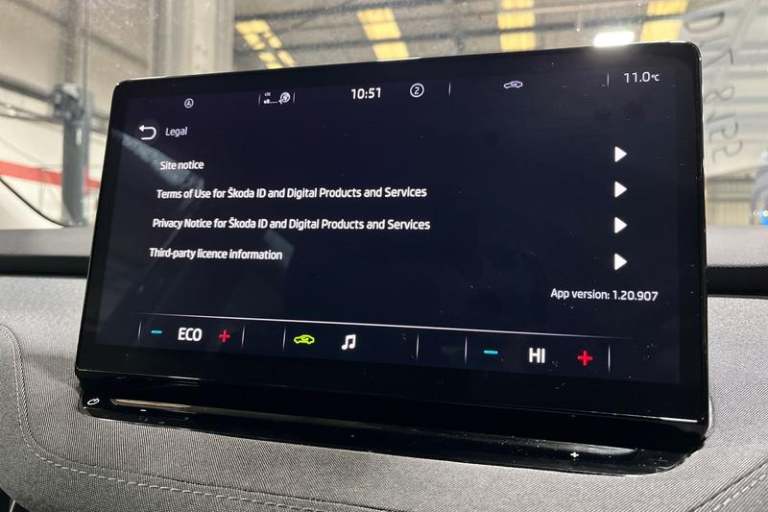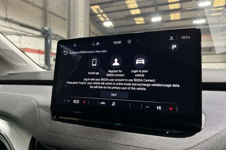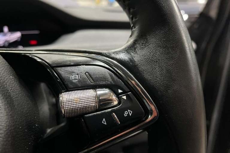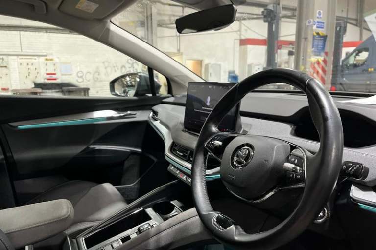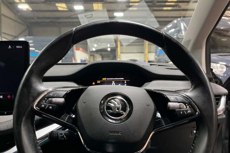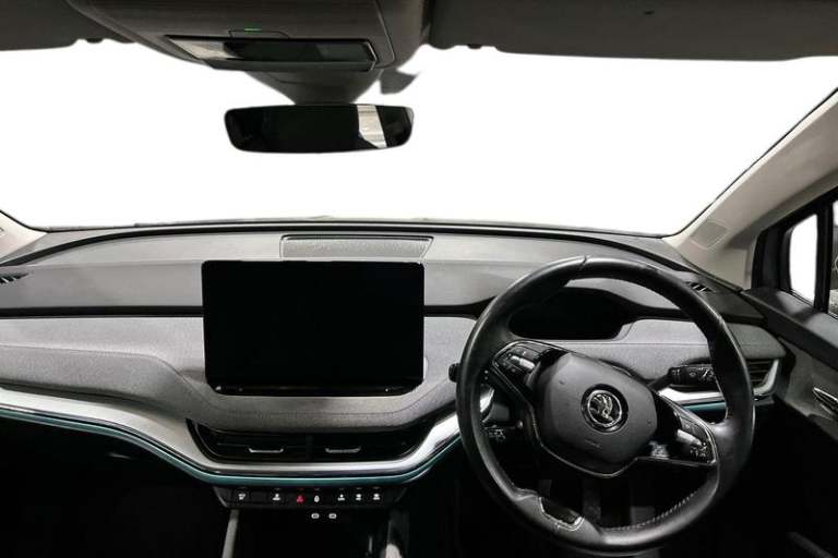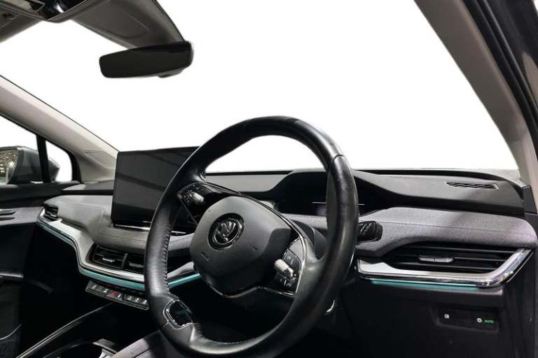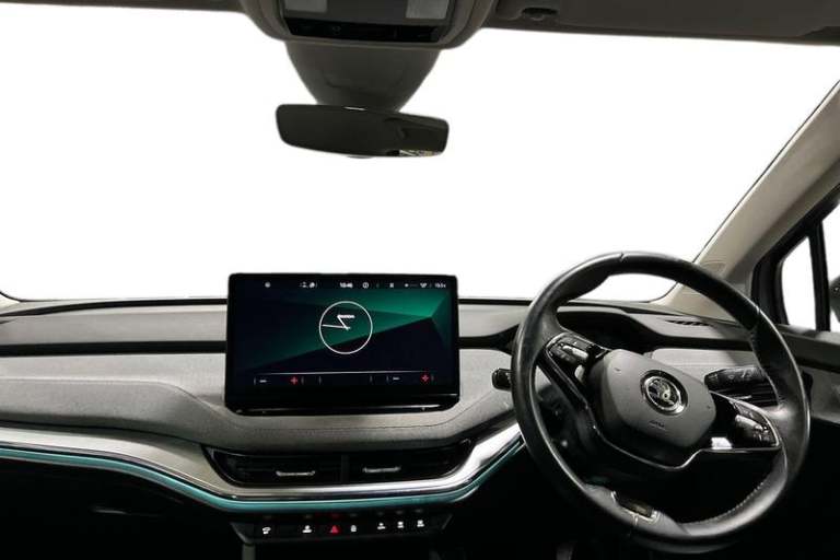 13 touchscreen display, Bluetooth system, E-call, Electronic engine sound, Exterior temperature indicator, Front parking sensors and rear view camera, Gesture control, Lane assist, Power assist steering, Rear parking sensors, Satellite navigation system, Skoda Connect iV remote services with charging, air conditioning and smart schedules, Speed limiter, Tailgate, Tailgate unlocking from outside, Virtual cockpit, Voice control system, Washer fluid level indicator, Wi-Fi hotspot, Wireless smartlink, Auto dimming rear view mirror, Black roof rails, Body colour bumpers, Body colour door mirrors and handles, Dashboard and door moulding light in multiple colours, Door moulding light in multiple colours, Electric adjustable heated folding door mirrors with boarding spots and welcome logo, Electric front and rear windows, Heat insulating darkened glass in side and rear windows, Heat insulating glass in windshield, Heated rear window, LED headlights with LED daytime running lights and headlight range control, LED rear lights, LED third brake light, Light assistant (coming home/tunnel light), Radiator grille frame in matt black with chrome strip, Rain and light sensors, Rear side wing doors, Rear spoiler, Rear window wiper with washer system and intermittent control, Safety reflectors on front and rear doors, Variable front intermittent wipers, 12V socket in boot, 3 rear headrests, 3 seat bench in 2nd row, 4 foldable roof handles with rear coat hooks, 60:40 foldable rear seat with sliding