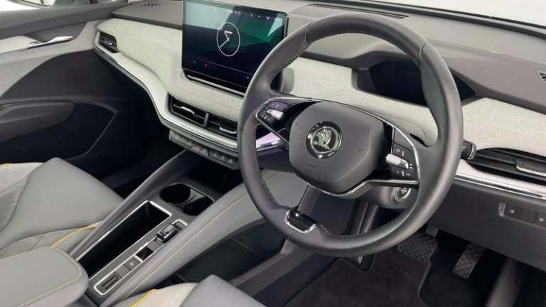 Experience all-electric style and everyday practicality with this koda Enyaq iV Coup? iV 80 (82 kWh, 204 PS, Single-speed, ULEZ), registration WU73UPF, showing just 7,197 miles. With one previous owner and a full koda Approved service history, it s a superb example of koda s sleek coup?-SUV quiet, refined and brilliantly equipped for modern motoring.Step inside to find heated front seats for cosy winter starts, seamless Bluetooth connectivity for calls and media, and a rear-view camera that makes parking effortless. The Enyaq iV Coup? s airy cabin, crisp infotainment and smooth one-pedal-friendly drive deliver a calm, confident experience every time you get behind the wheel. As an ULEZ-compliant EV, it s perfect for city driving and longer family journeys alike.When you purchase this car from Mon Motors koda Weston-super-Mare, you ll enjoy all the benefits of the koda Approved Used scheme, including a minimum 12-month Warranty, 12 months Roadside Assistance and much more. If the vehicle is under three years old, it remains covered by koda s original 36-month manufacturer warranty for the remaining term (36 months minus the vehicle s age); vehicles over three years old come with a minimum 12-month warranty for added peace of mind. This Enyaq iV Coup? has passed a rigorous multi-point check by our trained koda Technicians to meet koda Approved Used Standards and is available for immediate delivery.Confident, comfortable and cost-effective to run your Enyaq iV Coup? is ready to go. Battery pack heat pump, Transport pack - Enyaq, Metallic - Brilliant silver, Electric front and rear windows, Heat insulating darkened glass in side and rear windows, Heat insulating glass in windshield, Heated rear window, Rain and light sensors, Body colour bumpers, Body colour door mirrors and handles, Chrome side window surrounds, Dashboard and door moulding light in multiple colours, Panoramic sunroof, Radiator grille frame in matt black with chrome strip, Rear side wing doors, Rear spoiler, Safety reflectors on front and rear doors, LED headlights with LED daytime running lights and headlight range control, LED rear lights, LED third brake light, Light assistant (coming home/tunnel light), ESC (incl. ABS+MSR+ASR+EDS+HBA+DSR+RBS+MKB), Front assist with assisted automatic braking, Front disc brakes, Rear drum brakes, Cruise control, Electronic engine sound, Front and rear parking sensors, Power assist steering, Skoda Connect iV remote services with charging, air