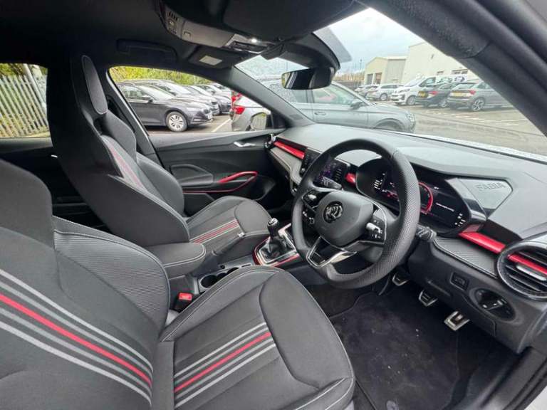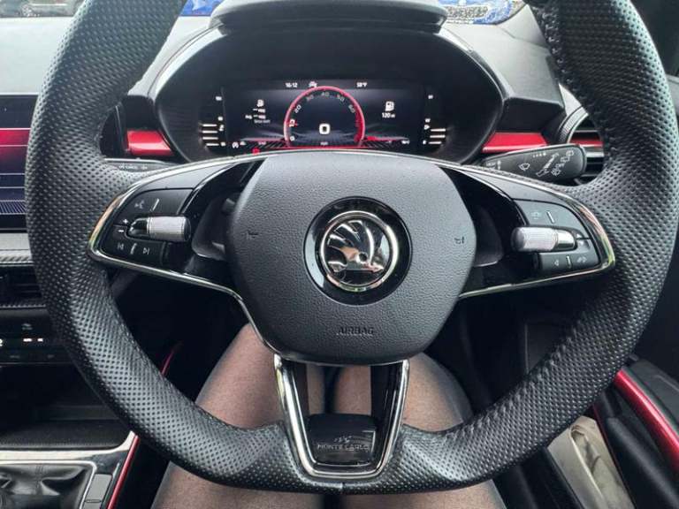 2 USB-C Ports in the Front - for Data Transmission and Charging, 6 Speakers - 4 in Front and 2 in Rear, Bluetooth, Bolero Radio with 8in Colour Display, DAB Radio, SmartLink, eCall Plus, Driver Alert, Parking Sensors - Rear, TPMS - Tyre Pressure Monitoring System, 17in Alloy Wheels - Procyon - Black Painted Diamond Cut, Badging - Monte Carlo, Bumpers - Body Coloured, Door Mirrors - Black, Electrically Adjustable and Heated Door Mirrors, Front and Rear Electric Windows, Ice Scraper in Fuel Filler Cap, Privacy Glass, Radiator Grille - Black, Rear Lights - Basic, Rear Spoiler, SKODA Lettering on Tailgate in Black, Sports Bumpers, Front Fog Lights, Headlight Range Control - Automatic, LED Daytime Running Lights with Coming Home and Leaving Home Feature, LED Headlights - Basic, LED Rear Fog Lights, 3 Spoke Leather Sports Multi-Function Steering Wheel, Aluminium Pedals, Auto Dimming Rear View Mirror, Carbon Effect Door and Side Trim Panels, Carbon Effect Lower Decorative Trim with White Stitching, Central Console with Removable Cup Holder and Storage Box, Chrome Handbrake Release Button, Colour Edition Air Vents, Door Handles - Interior in Black, Door Sill with FABIA Badging, Dual Zone Air Conditioning with Climatronic Electronic Control, Front Centre Armrest, Front Windscreen Wipers with Intermittent Function, Gear Knob-Handle - Leather, Grain Satin Black Central Console Cover, Height Adjustable Driver and Front Passenger Seat, Height Adjustable Front Headrests, Illumination of Luggage