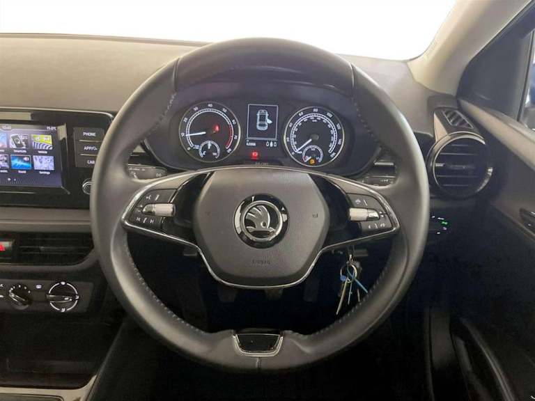 This Euro 6 compliant 1.0 litre petrol engine car offers a comfortable and practical driving experience, enhanced by its manual air conditioning, Bluetooth connectivity for seamless calls and music, and efficient LED headlights for improved visibility.The Fabia TSI SE Comfort is designed to impress with its impressive fuel economy, achieving a remarkable 55 miles per gallon, which is better than many similar vehicles. Its low CO2 emissions also contribute to its cost effectiveness. Furthermore, this model provides ample space with its large boot, making it ideal for shopping trips or holidays. For those who appreciate responsive performance, it accelerates from 0 to 60 miles per hour in just 10.4 seconds, demonstrating a good balance of efficiency and capability.For peace of mind this vehicle has only had 1 registered owner and has completed a multi point AA inspection.Competitive finance is also available.We are open 7 days a week and have more than 1500 cars to choose from.All our Euro 4 Petrol and Euro 6 Diesel vehicles meet the ULEZ standard.Vehicle specification can be found below. From time to time vehicles have manufacturer recalls notified. Please read our recall policy on our website for further information. eCall Plus, Swing Radio with 6.5in Touchscreen Display, SmartLink, Bluetooth, DAB Radio, 4 Speakers in Front, 2 USB-C Ports in the Front - for Data Transmission and Charging, TPMS - Tyre Pressure Monitoring System, Driver Alert, Multifunction Trip Computer in Black and White, Skoda Lettering Across Tailgate in Chrome, Rear Spoiler, Rear Lights - Basic, Electric Windows - Front, Door Mirrors in Body Colour with Integrated Indicators, Bumpers - Body Coloured, Electrically Adjustable and Heated Door Mirrors, Ice Scraper in Fuel Filler Cap, 15in Alloy Wheels - Rotare - Silver, LED Rear Fog Lights, LED Headlights - Basic, LED Daytime Running Lights with Coming Home and Leaving Home Feature, Headlight Range Control - Automatic, Ticket Holder, Unsplit Rear Bench Seat - Split Folding Backrest, Three Rear Headrests, Sun Visors with Mirror and Airbag Label on Passenger Side, Satin Black Door and Side Trim Panels in Front, Door Handles - Interior in Black, Dimming Rear View Mirror with Black Frame, Central Console with Fixed Cup Holder and Storage Box, Black Painted Air Vents, Air Conditioning - Manual, 2-Spoke Leather Multifunction Steering Wheel, 2 Reading Lights in Front and 2 Reading Lights in Rear, Leather Hand Brake Lever Handle,