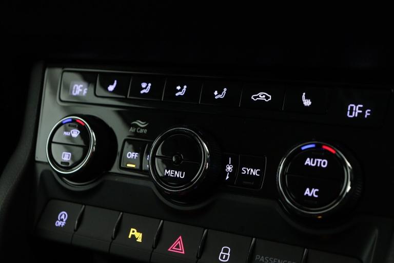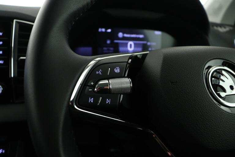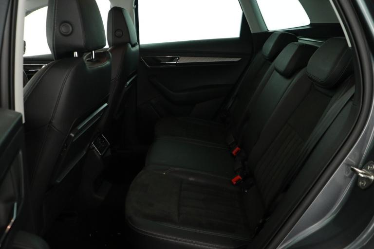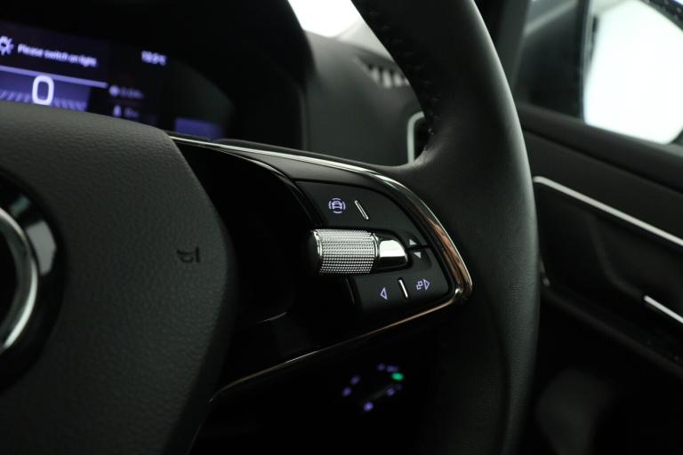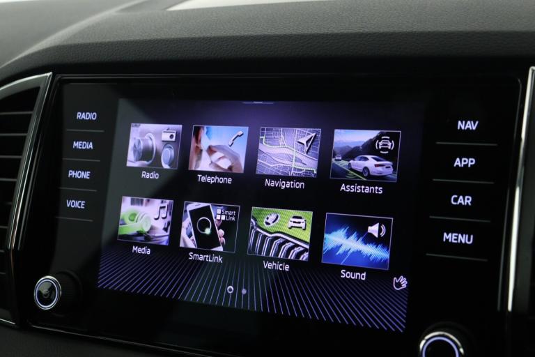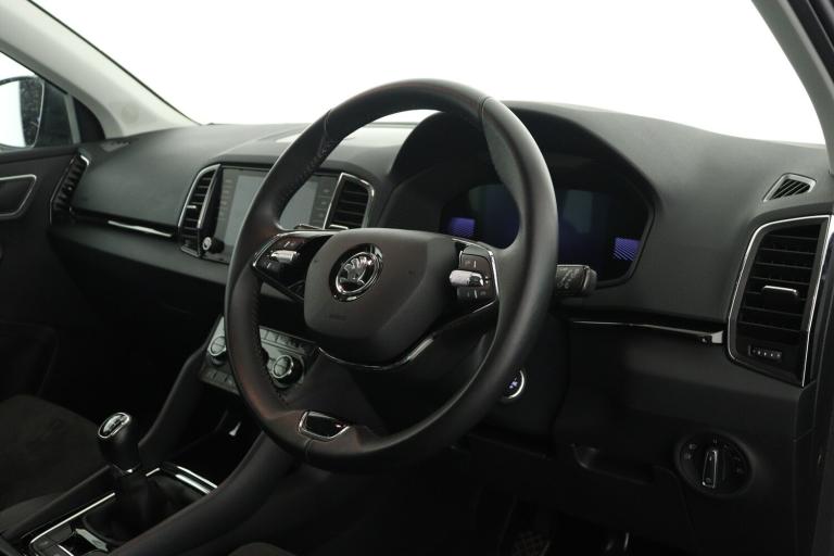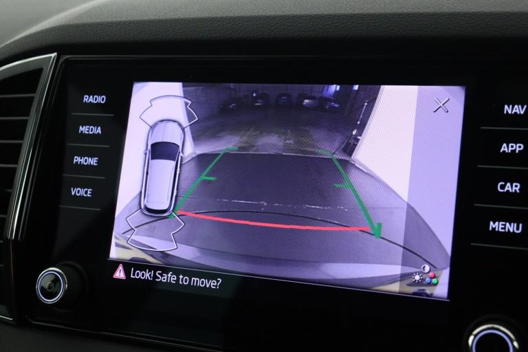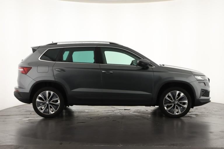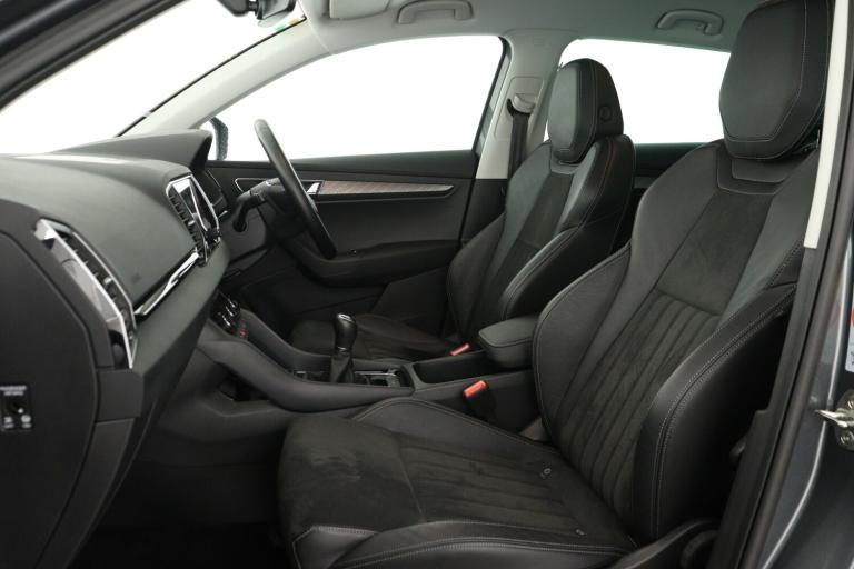 ..8'' Digital display, Care connect, Drive mode selector, Driver fatigue sensor, Electro-mechanical PAS, Emergency services call system, Outside temperature gauge, Service interval indicator, SmartLink wireless for Apple and wired for Android, Start/stop system with regenerative braking, USB C Port x 2 in front centre console, 8 Speakers, DAB radio with Bluetooth, USB connection, Acoustic glass, Aero front windscreen wipers with intermittent function, Auto dimming rear view mirror with light and rain sensors, Black electric window control buttons, Body colour door mirrors and handles, Dynamic headlight range control with cornering light function, Electric front and rear windows with child proof lock, Heated rear windscreen, LED daytime running lights, LED rear lights with high functionality welcome effect and dynamic indicators, Light assistant (coming/leaving home/tunnel light), Plastic scuff plates, Privacy glass, Rear side wing doors, Rear spoiler, Rear window wiper with washer system and intermittent control, Safety reflectors on front doors, Third brake light, 1.5 litre bottle holders in driver and front passenger door panels, 12V socket in boot, 12v socket in front centre armrest with storage compartment and rear air vents, 2 spoke leather heated multifunction steering wheel, 2 x Tablet holder, 3 rear height adjustable headrests, 3 seat bench in 2nd row, 4 foldable roof handles with rear coat hooks, Black floor carpet, Chrome inner door handles, Decorative door sills with KAROQ badging, Double sided boot floor, Foldable hooks in the boot, Front head restraints, Height adjustable front three point seats belts with tensioners, Height/reach adjust steering wheel, Ice scraper, Illuminated glovebox, Illuminated luggage compartment, Isofix child seat preparation for front passenger seat, Isofix child seat preparation outer rear, Manual lumbar support for front seats, Pen holder, Pollen filter, Rear boot cover, Rear reading lights, Rubbish bin door, Safety vest holder, Single front passenger seat, Storage box in upper central dashboard closed, Sunvisors with illuminated vanity mirrors, Textile floor mats, Ticket holder, VarioFlex seats with standard rear seat release, Boot pack - Karoq, Chrome roof rails + chrome pack - Karoq, Parking pack - Karoq, Automatic door unlocking in case of crash, Automatic fuel cut off in case of crash, Child locks on rear doors, Driver airbag, Electronic parking brake with auto hold function, Emergency rear braking signal, ESC