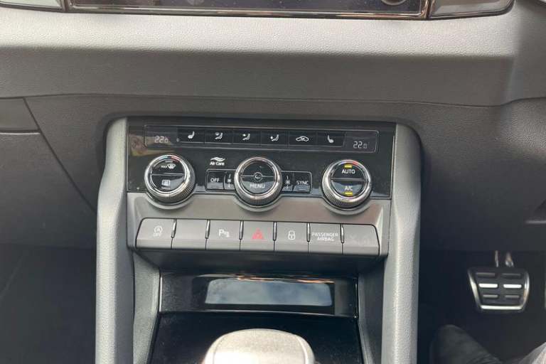 Black roof rails, Driver airbag, Rear spoiler, Outside temperature gauge, Height/reach adjust steering wheel, Illuminated glovebox, Service interval indicator, Rear reading lights, Two tone horn, Black door mirrors, Privacy glass, Body colour door handles, Pollen filter, Front side airbags, Electronic engine immobiliser, Third brake light, Black centre console, Front head restraints, Sunvisors with illuminated vanity mirrors, 3 rear height adjustable headrests, Black radiator grille, Head airbags, Heated rear windscreen, Remote central locking with 2 remote folding keys, Illuminated luggage compartment, Non Smokers pack, Black floor carpet, Auto dimming rear view mirror with light and rain sensors, Isofix child seat preparation for front passenger seat, Hill hold control, Ticket holder, Chrome inner door handles, Tyre pressure monitor, USB connection, LED daytime running lights, Rear diffuser, Acoustic glass, Panoramic sliding sunroof, Black air vent surround, DAB radio with Bluetooth, 3 seat bench in 2nd row, Emergency rear braking signal, Pedestrian monitor, Pen holder, Ice scraper, Safety vest holder, Textile floor mats, ESC (incl. ABS+MSR+ASR+EDS+HBA+DSR+RBS+MKB), Sports front and rear bumpers, Sportline badge on front fender, Black roof headlining, 4 foldable roof handles with rear coat hooks, Virtual pedal with electrically operated boot door, Virtual Cockpit - 10.25 digital display, Keyless entry and start/stop, Light assistant (coming/leaving home/tunnel light), Start/stop