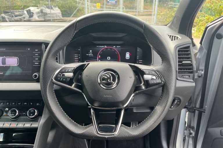 This 2023 Skoda Karoq TSI SportLine presents an exceptional ownership proposition with its remarkably low mileage of just 13142 miles, a testament to its careful single owner. This Euro 6 compliant 1.5 litre petrol model offers peace of mind alongside its sporty SportLine trim. Inside, you'll find the comfort of the Winter Pack with heated seats, complemented by the Light Package featuring LED headlights for enhanced visibility. Manoeuvring is made effortless with the Parking Package, which includes front and rear parking sensors and a rear view camera, further aided by front and rear parking assistance. Enjoy an airy cabin and stunning views through the fixed Panoramic Glass Roof, and stay connected with convenient Wireless Smartphone Charging. The generous boot space ensures practicality for all your needs.This Karoq truly stands out, offering a compelling blend of performance and efficiency. Its 0-60mph acceleration in just 8.6 seconds demonstrates its responsive nature, while its low CO2 emissions highlight its economical and environmentally conscious design, making it a smarter choice compared to many similar vehicles.