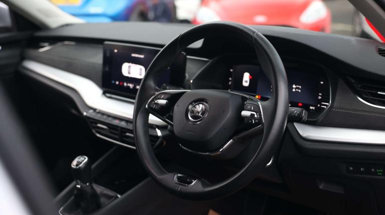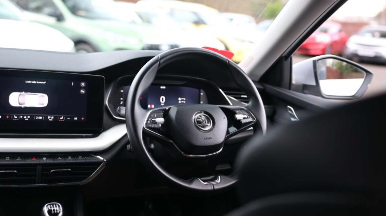 .The Skoda Octavia 1.5 TSI SE L is a perfect combination of spacious practicality, modern tech, and refined driving comfort. From the moment you sit behind the leather-trimmed, multifunction steering wheel and glance at the 10.25'' Virtual Cockpit digital display, you immediately feel in command. The cabin balances style with thoughtful touches like microsuede upholstery with grey stitching, illuminated glovebox, rear USB-C charging ports, and a folding parcel shelf, making every journey convenient and enjoyable. On the road, the 1.5 TSI engine delivers smooth, confident performance, complemented by hill start assist, electronic parking brake, speed limiter, and Skodas suite of safety systems. Front and rear parking sensors with manoeuvre assist, driver fatigue monitoring, and lane/turn assist add peace of mind, while wireless SmartLink for Apple CarPlay keeps you connected effortlessly. Columbus satellite navigation with the 10'' touchscreen ensures youll never lose your way. Passengers enjoy comfort and practicality too. Heated front seats, rear privacy glass, foldable rear seats, and clever storage optionsincluding an umbrella in the door panelmake every trip feel considered. On longer journeys, the Octavia keeps everyone relaxed and organised, with multiple USB-C charging ports and ambient lighting adding a touch of luxury. Outside, Skodas clean design language shines with chrome grille surrounds, body-coloured mirrors and handles, and rear privacy glass. Functional touches like rain/light sensors, headlight washers, and a high-level third brake light show this car is as practical as it is stylish. With comprehensive safety features including airbags, ESC, hill hold control, ISOFIX mounts, and automatic emergency responses, this Octavia offers reassurance alongside sophistication. Its a car that comfortably fits family life, business commutes, and weekend adventures, all while looking polished and feeling enjoyable to drive..1x USB Type C port in rear view mirror (charging only), 2x USB Type C ports in rear of front centre armrest (charging only), Bluetooth system, Boot lid release from inside vehicle (electrically), Columbus satellite navigation with 10'' touchscreen display, Driver fatigue sensor, eCall emergency system, Electro-mechanical power steering, Front and rear parking sensors with manoeuvre assist, Front assist system, Speed limiter, Turn Assist, Virtual Cockpit - 10.25'' digital display, Voice control system, Wireless SmartLink for Apple