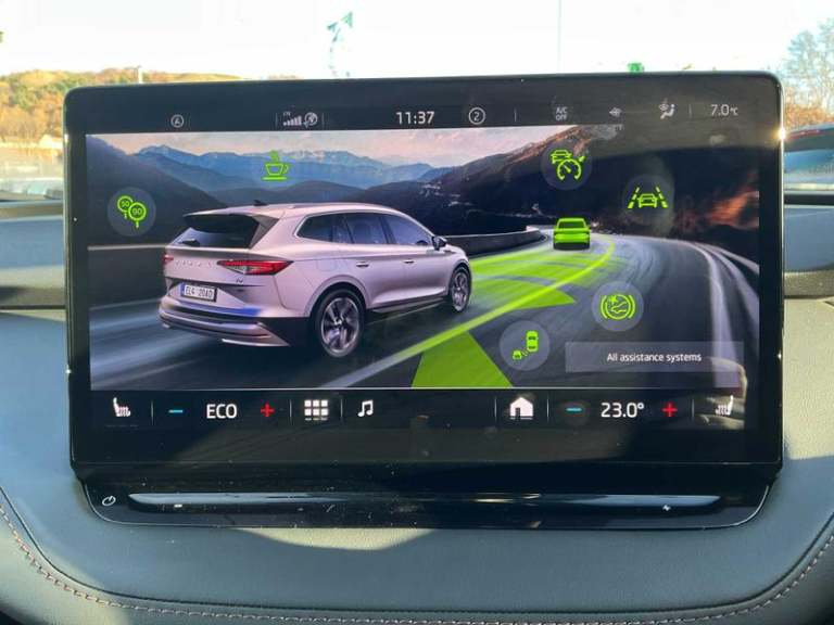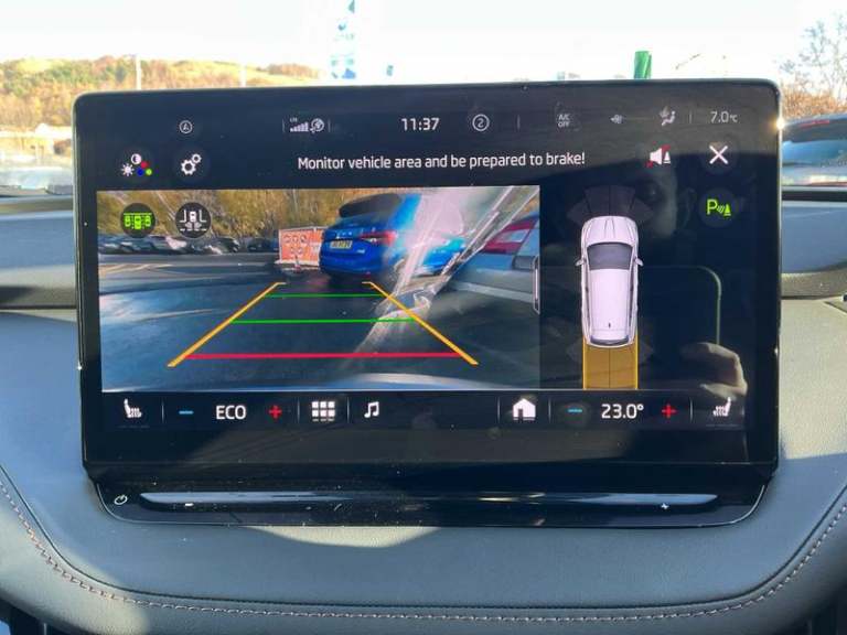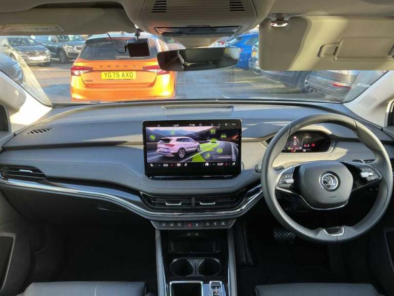 12V Socket in Boot, 13in Touchscreen Display, Bluetooth, DAB Radio, Satellite Navigation System, Skoda Connect - Infotainment Online - 3 years and Remote Access - 1 Year, Skoda Connect - iV Remote Services - Remote Charging, Speakers x8, Towbar Preparation, USB-C Ports, Wifi Hotspot for Up To 8 Devices, Wireless Charging, Wireless Smartlink, e-Call, ACC - Adaptive Cruise Control with Traffic Jam Assist, Blind Spot Detection, Drive Mode Select, Driver Alert, Parking Sensors - Front and Rear, Rear View Camera, Traffic Sign Recognition, Tyre Pressure Monitor, Voice Control, Washer Fluid Level Indicator, 19in Alloy Wheels - Proteus, Anti-Theft Locking Wheel Bolts, Black Roof Rails, Door Mirrors - Heated - Electronically Adjustable - Folding - Auto Dimming - Memory function - Boarding Spots and Welcome Logo, Electric Windows - Front, Heated Washer Nozzles in Front, Privacy Glass and Acoustic Side Windows, Radiator Grille in Matt Black with Chrome Surround, Rear Spoiler, Side and Rear Windows in Heat Insulating Glass, Windscreen in Heat Insulating Glass, Daytime Running Lights - LED, Dynamic Headlight Range Control with Cornering Light Function, Front Fog Lights, Full LED Matrix Beam Headlights with Variable Light Distribution, Full LED Rear Lights with Variable Lighting Functions, Headlights - Washers, 2-Spoke Leather Heated Multi-Function Steering Wheel with Paddles for Recuperation Level Selection, Electrically Adjustable Drivers Seat with Memory Function, Electrically Operated