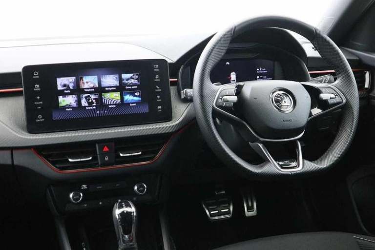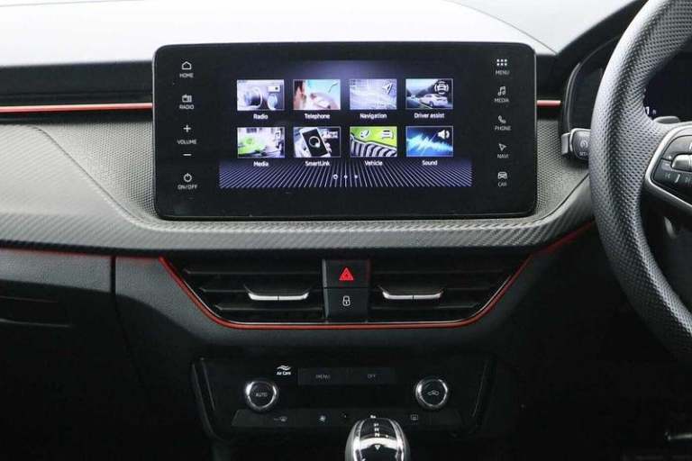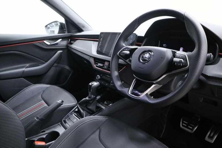 Turn heads in this striking koda Kamiq Monte Carlo 1.5 TSI 150 PS DSG (ULEZ), registration DG74FMF, with just 7,597 miles. With its sporty Monte Carlo styling and effortless DSG automatic gearbox, it s a compact SUV that feels every bit as premium as it looks. This example has had two previous owners and benefits from a full dealership koda approved service history, giving you added confidence in how it has been maintained.On the road, the 1.5 TSI engine delivers smooth, responsive performance, while everyday driving is made simple with rear parking sensors. Inside, you ll enjoy a high-quality cabin featuring satellite navigation and a crisp Virtual Cockpit display, putting key information and directions right where you need them. The 18 alloy wheels complete the sporty stance, and with Apple CarPlay and Android Auto you can seamlessly bring your music, calls and apps along for the journey.Buy from Mon Motors Weston-Super-Mare koda and you ll receive the full reassurance of the koda Approved scheme, including a minimum 12 months Warranty, 12 months Roadside Assistance and much more. If the vehicle is under three years old, it also benefits from the remaining term of koda s original manufacturer warranty (36 months minus the vehicle s age); vehicles over three years come with a minimum 12-month warranty. Every koda Approved car must pass a rigorous multi-point inspection by our trained koda Technicians, ensuring it meets koda Approved Used Standards and is prepared to the highest level. This Kamiq is available for immediate delivery ready when you are.Choosing Mon Motors Weston-Super-Mare koda means you re buying from an official koda franchise retailer, with expert product knowledge, manufacturer-trained technicians, transparent provenance, and the support of a team committed to looking after you long after you drive away. Exclusive paint - Velvet red, Monte Carlo cloth - Black + Black with white armrest stiching + Black ceiling, Extended tailgate glass, Heated rear window, Light sensors, Rear wiper, Ticket holder inside windscreen, Black radiator grille, Black rear diffuser, Body colour bumpers, Body colour door handles, Boot lettering in black, Fixed panoramic sunroof with black roof rails, Rear side wing doors, Automatic headlight control with coming home and leaving home feature, LED daytime running lights, LED high beam, LED low beam, LED third brake light, Disc brakes, ESP, Extended and predictive pedestrian/cyclist protection, Hill hold