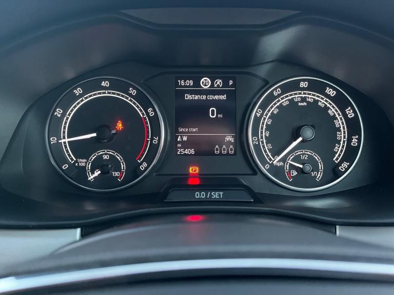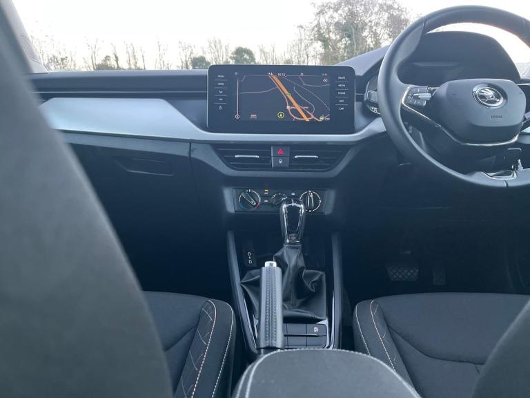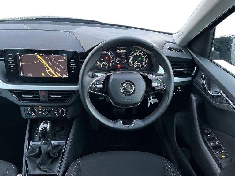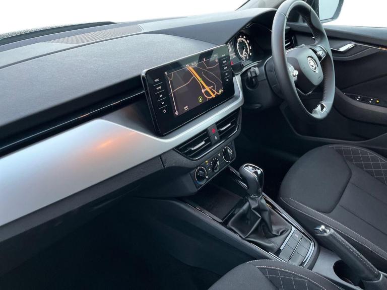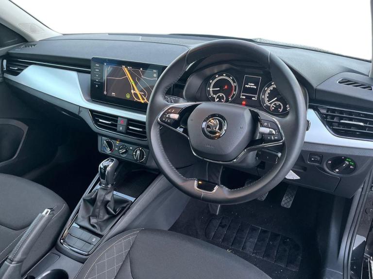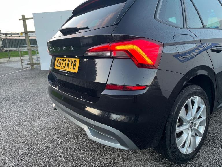 This Skoda Kamiq 1.0 SE Drive Tsi S-A is a sleek black vehicle with a modern design. It has covered just 25399 miles and is in great condition. Featuring a spacious interior with comfortable cloth upholstery, this car is equipped with advanced technology such as Amundsen satellite navigation displayed on a 9.2"" touchscreen, Bluetooth system, and gesture control. Safety features include airbags, ESP, front assist system, and traction control for a secure driving experience. This car also offers convenience with features like rain sensors, privacy glass, electric windows, and a manual parking brake. With its smart features and stylish look, the Skoda Kamiq is a reliable and practical choice for anyone looking for a comfortable and safe driving experience.