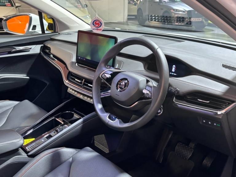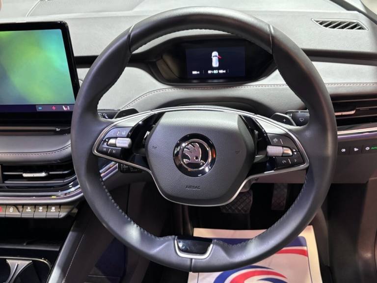 This 2025 Skoda Enyaq 85 Edition presents an exceptional opportunity with an incredibly low mileage of just 853 miles, making it virtually as new. As a single owner vehicle, it boasts a substantial 82 kWh battery offering a maximum range of 365 miles, perfect for both daily commutes and longer journeys. Charging is convenient, with a full charge at home taking approximately 12 hours and 13 minutes on a 7kW charger, while rapid public charging can achieve 80% capacity in as little as 28 minutes. This electric Enyaq also features advanced technology, including Bluetooth connectivity, Full LED Matrix Beam Headlights with Variable Light Distribution, and a Keyless Entry Start-Stop System with Walk Away Locking for effortless access and security. The driving experience is further enhanced by a 2-Spoke Leather Heated Multi-Function Steering Wheel, complete with paddles for selecting recuperation levels, and front and rear parking sensors for added peace of mind. The acceleration of 0-60mph in just 6.5 seconds highlights the responsive and dynamic performance of this electric SUV, setting it apart from many other vehicles in its class. This Skoda Enyaq 85 Edition combines cutting edge electric technology with premium features and outstanding condition, offering a compelling choice for those seeking a sophisticated and efficient driving experience. PROBABLY THE BEST PREPARED VEHICLES IN SOUTH WALES. NO ADMIN FEES. VERY COMPETETIVE FINANCE RATES. BEST PART EXCHANGE PRICES GIVEN. NO PRESSURE SALES TEAM. BRILLIANT AFTERSALES CARE. ALL CARS ARE HPI CHECKED AND CLEAR. ALL VEHICLES ARE CHECKED IN THE WORKSHOP BEFORE THEY ARE PUT ON SALE. FREE MOT FOR LIFE WHEN BOUGHT BACK TO US. PLEASE CALL 01633833700 NEWPORT NOW. OVER 350 CARS IN STOCK OPEN SEVEN DAYS A WEEK. Vehicle specification data is supplied by a 3rd party. We cannot guarantee the accuracy of any specification supplied by a 3rd party and we recommend that you physically check the specification of the vehicle on site prior to purchase. This information does not form part of the buying contract..OVER 350 CARS IN STOCK (MOST INDOORS), NO ADMIN FEES. NO PRESSURE SALES, FREE MOTs WHEN BROUGHT BACK TO US., LOW RATE FINANCE AVAILABLE, FAMILY RUN BUSINESS....., 12V Socket in Boot, 13in Touchscreen Display, 19in Alloy Wheels - Regulus Anthracite, 2-Spoke Leather Heated Multi-Function Steering Wheel with Paddles for Recuperation Level Selection, ABS - Anti-Lock Braking System, ACC - Adaptive Cruise Control with Traffic Jam Assist, Airbag - Front and Rear Side with Curtain Airbags and Central Interaction Airbag, Anti-Theft Alarm System - Interior Monitoring - Backup Horn and Towing Protection, Anti-Theft Locking Wheel Bolts, Blind Spot Detection, Bluetooth, Child Safety Lock - Power Operated, Chrome Window Surrounds, Crew Protect Assist, DAB Radio, Daytime Running Lights - LED, Disc Brakes - Front, Door Mirrors - Heated - Electronically Adjustable - Folding - Auto Dimming - Memory function - Boarding Spots and Welcome Logo, Drive Mode Select, Driver Alert, Driver and Front Passenger Airbags with Front Passenger Airbag Deactivation, Drum Brakes - Rear, Dynamic Headlight Range Control with Cornering Light Function, Electric Windows - Front, Electrically Adjustable Drivers Seat with Memory Function, Electrically Operated Boot with Kick Activation - Virtual Pedal, Extended Interior Noise Suppression, Front Assistant including Automatic Braking Function, Front Fog Lights, Full LED Matrix Beam Headlights with Variable Light Distribution, Full LED Rear Lights with Variable Lighting Functions, Gesture Control, Glasses Storage Compartment in Front Centre Armrest, Headlights - Washers, Heated Front Seats, ISOFIX Child Seat Preparation - Front Passenger, ISOFIX Child Seat Preparation to Outer Rear Seats including Top Tether Hooks, Keyless Entry Start-Stop System Advanced with Walk Away Locking, LED Ambient Lighting, Light Assistant, Light and Rain Sensor with Auto-Dimming Rear View Mirror, Loft Design Selection, Luggage Compartment - Boot Lighting, Manual Blinds for Rear Windows, Manual Lumbar Support for Front Passenger Seat, Mode 3 Cable - 32A - 6 Metres, Panoramic Glass Roof, Parcel Shelf - Folding, Parking Sensors - Front and Rear, Power Adjustable Lumbar Support for Drivers Seat, Power Steering, Privacy Glass and Acoustic Side Windows, Radiator Grille in Matt Black with Chrome Surround, Rear View Camera, Remote Central Locking with SAFE Function, Satellite Navigation System, Seatbelt Reminder - Visual and Acoustic, Side and Rear Windows in Heat Insulating