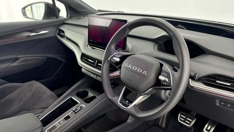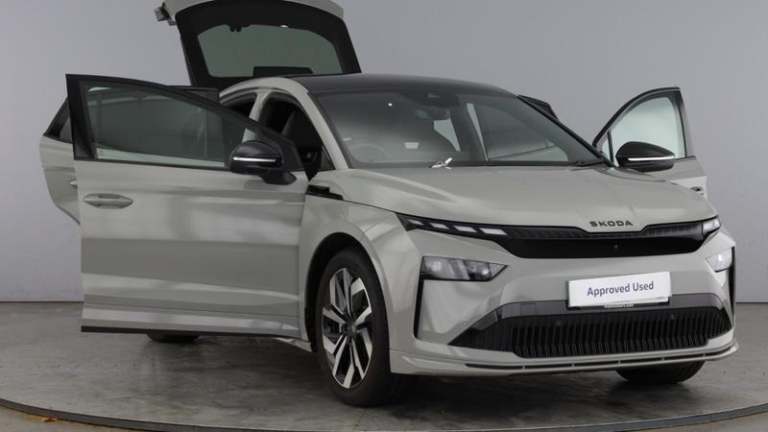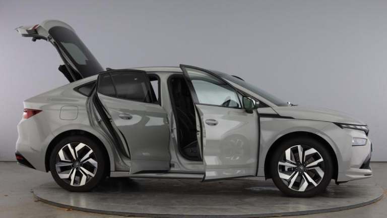 koda Enyaq 210kW 85x SportLine 82kWh 4x4 5dr Auto (ULEZ) registration WP25KUO, just 4,987 miles. Formerly a Mon Motors demonstrator, this one-owner Enyaq comes with full dealership koda Approved service history and presents in superb condition. The 85x all-wheel-drive powertrain delivers confident performance, while the SportLine styling and 20 alloy wheels give a purposeful stance. Inside, you ll find a bright, airy cabin thanks to the panoramic sunroof, plus heated seats for year-round comfort. Everyday usability is effortless with satellite navigation, front and rear parking sensors, Bluetooth connectivity, Apple CarPlay and Android Auto.When you purchase this Enyaq from Mon Motors koda Bristol you ll enjoy the benefits of the koda Approved Used scheme, including a minimum 12 months Warranty, 12 months Roadside Assistance and much more for added peace of mind. If the vehicle is under three years old, it remains covered by koda s original 36-month manufacturer warranty, with the remaining term being 36 months minus the vehicle s age; vehicles over three years come with a minimum 12-month warranty. This car has passed a rigorous multi-point check by our trained koda Technicians to meet koda Approved Used Standards and is available for immediate delivery.Buy with confidence from Mon Motors koda Bristol, an official koda franchise retailer, offering manufacturer-trained experts, genuine parts, transparent pricing and a friendly, professional handover experience tailored to you. Electric front and rear windows, Heat insulating darkened glass in side and rear windows, Heat insulating glass in windshield, Rain and light sensors, Variable front intermittent wipers, Body colour door mirrors and handles, Body colour door sills, Dashboard and door moulding light in multiple colours, Gloss black tailgate lettering, Gloss black window surround, Panoramic opening glass sunroof, Radiator grille in gloss black, Rear side wing doors, Safety reflectors on front and rear doors, Dynamic headlight range control with cornering light function, Full LED Matrix beam headlights with variable light distribution, Integrated fog light with all-weather function, LED daytime running lights, LED rear lights with animated indicators, LED third brake light, Light assistant (coming and leaving home), ESC (incl. ABS+MSR+ASR+EDS+HBA+DSR+RBS+MKB), Front disc brakes, Rear drum brakes, Blind Spot Detection (BAS), Drive mode selector, Driver alert system, Electronic engine sound, Front