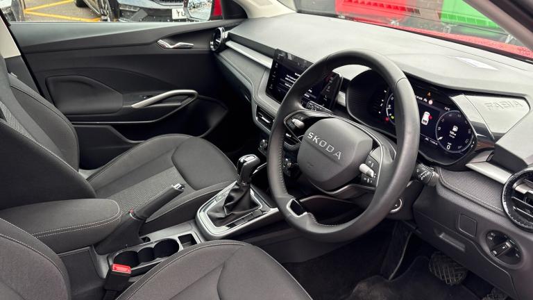 Discover this 2025 Skoda Fabia TSI SE L Edition, a refined and practical choice for your next vehicle. This model boasts a 1.5 litre petrol engine, meeting Euro 6 emission standards, and comes equipped with desirable features such as Dual Zone Air Conditioning with Climatronic Electronic Control for personalised comfort, and Wireless Smartlink, seamlessly integrating your Apple CarPlay and Android Auto for effortless connectivity on the go.Experience impressive performance with a swift 0-60mph acceleration in just 7.7 seconds, while enjoying excellent fuel economy with a highlight of 53 miles per gallon. This Fabia also offers a generous boot space, making it ideal for all your needs, and its low CO2 emissions indicate a more environmentally conscious drive compared to many other vehicles..Air Conditioning, Climate Control, Cruise Control, Satellite Navigation, Alloy Wheels, DAB Radio, Bluetooth, Parking Sensors, Stop Start, Low Mileage, USB, Manufacturer Approved, Apple-Android Play, Auto Lights, Electric Folding Mirrors, Pre Crash Prevention& Rain Sensors, Textile floor mats, Privacy glass, Front and rear electric windows, Front window wiper intermittent control, Rear window wiper with washing nozzles, Hill hold control, Electromechanical power steering, ESC including ABS, MSR, ASR, EDS, HBA and XDS, FRONT ASSIST (AEB City and AEB Inter Urban), Bluetooth connection, Traffic sign recognition, Driver alert system, Service interval indicator, Exterior temperature gauge, Virtual cockpit with 10.25"" colour display, Wireless SmartLink for Apple CarPlay and Android Auto, Body colour door mirrors, Auto dimming rear view mirror, Door mirror integrated indicators, Satin black door and side trim panel in front, Metallic grey upper decorative trim