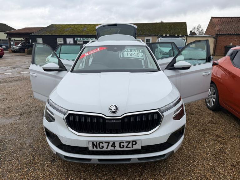 2025 (74) SKODA KAMIQ SE L EDITION. 1.0L PETROL ENGINE, 6 SPEED MANUAL GEARBOX. MOON WHITE. X2 KEYS. 0 FORMER KEEPERS , 1 LADY OWNER. 115BHP , AVRAGE 50-55MPG. ONLY 2900 MILES FROM NEW. COMES WITH ITS FIRST EVER SERVICE COMPLETED BY US UPON SALE. £195 A YEAR ROAD TAX. FIRST MOT IS DUE ON 24/08/2028. X4 LIKE NEW MATCHING GOODYEAR TYRES. 3 YEAR SKODA MANUFACTURES WARRANTY. 3 MONTH MINIMUM IN-HOUSE WARRANTY FOR YOUR PEACE OF MIND & OPTIONS TO EXTEND UP TO 24 MONTHS. This Skoda Kamiq SE L Edition is perfect for city driving and longer journeys alike, offering practicality without compromising on style. With its low mileage and ""AS NEW"" condition, this car is ready for a new owner. SKODA KAMIQ SE SPEC:9.2 INCH TOUCH SCREEN MEDIA ENTERTAINMENT SYSTEM. KEYLESS ENTRY + PUSH START. AUTO HEADLIGHTS/WIPERS. HEATED STEERING WHEEL & SEATS. 18 INCH ALLOY WHEELS. AUTOMATIC HEADLIGHTS AND WIPERS. LANE ASSISTANCE & DYNAMIC DRIVING MODES. ACTIVE VOICE CONTROL/CRUISE CONTROL. FRONT HEATED WINDSCREEN. REAR PRIVACY GLASS. SAT NAV, BLUETOOTH CONNECTIVITY, AUX AND USB OUTPUTS. REVERSE CAMERA. £19,495 - HPI CLEAR - FINANCE AVAILABLE. MINIMUM £500 PART EXCHANGE ON ANY VEHICLEALL VEHICLES ARE INSPECTED AND ROAD TESTED BEFORE REACHING THE FORECOURT SO YOU CAN DRIVE AWAY WITH CONFIDENCE.UNIT 7, ROSE CENTRE RETAIL PARK, NORTH WALSHAM, NR28 0DR