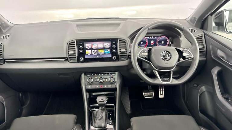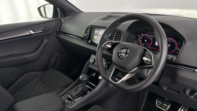 Discover a superb example of the koda Karoq 1.5 TSI SportLine DSG (ULEZ), registration EN74OBX, with just 4,126 miles and one previous owner. Finished with the confident SportLine styling and paired with the smooth DSG automatic gearbox, this Karoq is an ideal choice for drivers who want everyday practicality with a sharper, more premium feel.Step inside and you ll immediately appreciate the high-spec cabin, led by the crisp Virtual Cockpit display and seamless smartphone connectivity via Apple CarPlay and Android Auto, plus Bluetooth for hands-free calls and audio streaming. For added comfort and a real sense of space, the panoramic sunroof floods the interior with natural light, while the striking 19 alloy wheels complete the SportLine look beautifully.This Karoq comes with a full koda approved dealership service history and is prepared to exacting standards. It has passed a rigorous multi-point inspection by our trained koda Technicians to meet koda Approved Used Standards and is available for immediate delivery. For added reassurance, the vehicle is covered by koda s original 36-month manufacturer warranty if under three years old (remaining term is 36 months minus the vehicle s age). Vehicles over three years come with a minimum 12-month warranty.When you purchase from Mon Motors Bristol koda, an official koda franchise retailer, you ll enjoy the full benefits of the koda Approved scheme, including a minimum 12 months Warranty, 12 months Roadside Assistance and much more. You ll also benefit from expert koda product knowledge, manufacturer-trained technicians, and the confidence of buying from a trusted, established retailer committed to quality and customer care. Acoustic glass, Aero front windscreen wipers with intermittent function, Black electric window control buttons, Black radiator grille, Black roof rails, Body colour door handles, Front door steps with SportLine logo, Panoramic sliding sunroof, Rear side wing doors, Sportline decorative inserts with badging, LED daytime running lights, LED rear lights with high functionality welcome effect and dynamic indicators, Light assistant (coming/leaving home/tunnel light), ESC (incl. ABS+MSR+ASR+EDS+HBA+DSR+RBS+MKB), Auto dimming rear view mirror with light and rain sensors, Black door mirrors, Automatic door unlocking in case of crash, Automatic fuel cut off in case of crash, Driver airbag, Front side airbags, Head airbags, Knee airbags, Passenger airbag with switch-off function, Seatbelt
