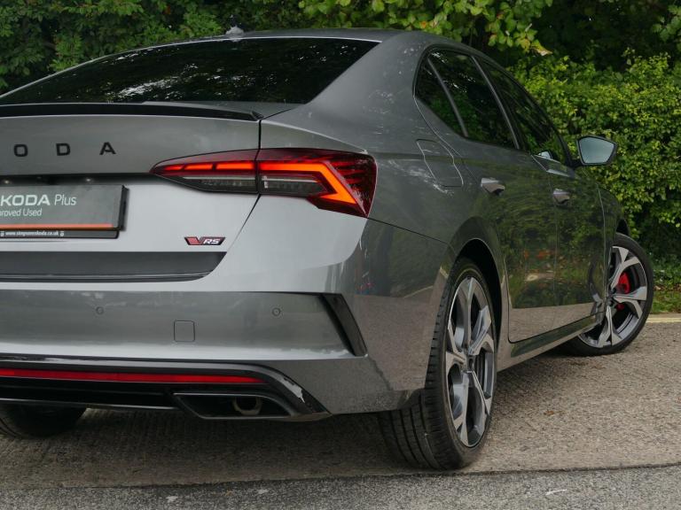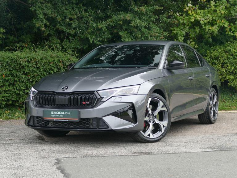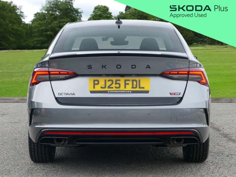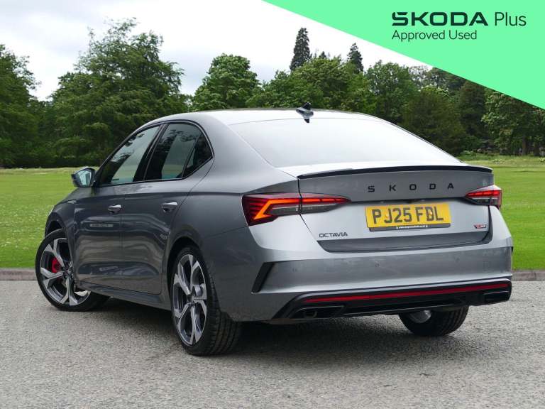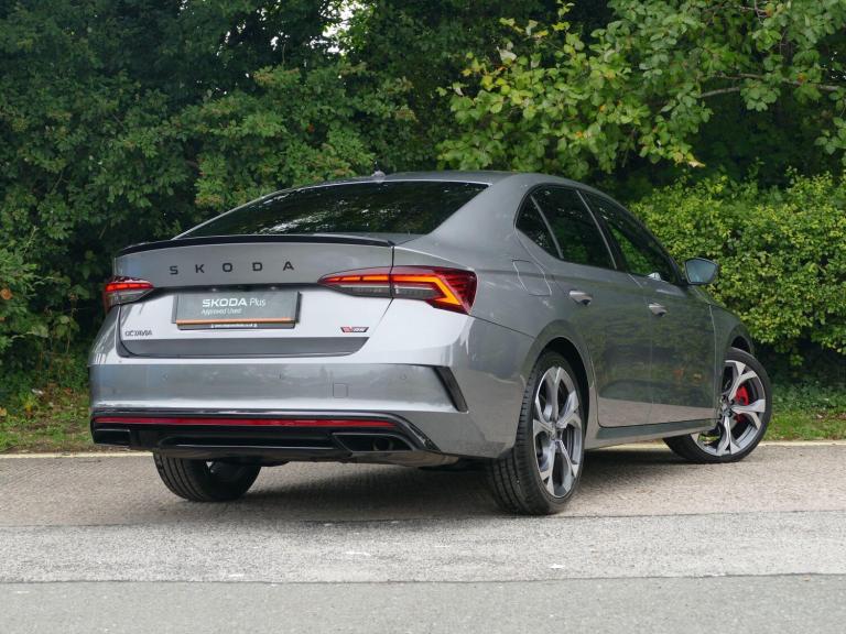 Introducing our stunning 2025(25), ex-demonstrator Skoda Octavia vRS Hatch 2.0 TSI 265PS DSG automatic finished in Graphite Grey Metallic with 19'' Elias Anthracite alloy wheels. Adaptive cruise control with traffic jam assist, blind spot detection, front assist, traffic sign recognition and turn assist all work seamlessly to support a more confident driving experience. Front and rear parking sensors, combined with a rear view camera, make parking simple and stress-free in any environment. Drive mode select allows you to tailor the vehicle's performance to suit your preferences, whether you're driving in the city or on the open road. Dual zone air conditioning and heated front seats ensure comfort in all seasons, while LED headlights offer excellent visibility during night-time driving. The 13'' infotainment touchscreen provides easy access to satellite navigation, DAB radio, Bluetooth, wireless Apple CarPlay and Android Auto, keeping you connected and entertained throughout your journey. The 10.25'' customisable virtual cockpit displays key driving data and navigation clearly in your line of sight, personalised to your chosen layout. ULEZ compliant. Part exchanges welcome. Please contact our team at Simpsons Skoda Preston for more information, to book your test drive or to request a walk-around video presentation of the vehicle. As a family-owned business with over 80 years of experience, the Simpson family has looked after the motoring needs of Lancashire since 1944. We are driven by customer satisfaction and all our cars are carefully prepared to our own and Skoda's exacting approved standards, both mechanically and cosmetically. Benefits from the remaining manufactures warranty until 01/05/2028.