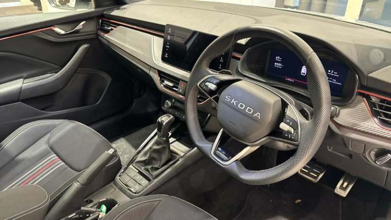 Discover the sporty side of family motoring with this koda Scala 1.0 TSI 116 Monte Carlo Edition 5dr DSG (ULEZ), registration CN25ZYO, with just 3,063 miles on the clock. Originally sold here at Mon Motors and with one previous owner, this Scala comes with full koda Approved service history for added peace of mind. It most recently benefited from an oil change service at 2,989 miles, so you can drive away confident that it has been carefully maintained.Inside, the Monte Carlo specification combines style and technology, with a virtual cockpit putting key driving information clearly in front of you, heated seats for extra comfort on colder mornings and a rear-view camera to make parking and manoeuvring effortless. Front and rear parking sensors add further reassurance in tight spaces, while adaptive cruise control helps make longer journeys more relaxed and refined.When you purchase this car from Mon Motors Gloucester koda, you will enjoy all the benefits of the koda Approved scheme, including a minimum 12 months Warranty, 12 months Roadside Assistance and much more. If the vehicle is under three years old, it remains covered by koda s original 36-month manufacturer warranty, with the remaining term being 36 months minus the vehicle s age. Vehicles over three years come with a minimum 12-month warranty as standard. This car has passed a rigorous multi-point check by our trained koda Technicians to meet koda Approved Used Standards and is available for immediate delivery.As an official koda franchise retailer, Mon Motors Gloucester koda offers expert product knowledge, manufacturer-approved technicians, genuine koda parts and a professional, customer-focused buying experience. Flexible finance options, competitive part-exchange valuations and comprehensive aftersales support all come together to ensure you enjoy a smooth, transparent and reassuring ownership journey from the moment you drive away. Metallic paint, Convenience plus pack without rear camera - Scala, Metallic - Moon white, Monte Carlo with carbon effect cloth - Black/FREDERIC Red Stripe with Art. leather Carbon decor, Automatic intermittent wipers, Extended tailgate glass, Light sensors, Rear wiper, Tinted windows, Black radiator grille, Black rear diffuser, Body colour bumpers, Body colour door handles, Chrome moulding around grille, Rear side wing doors, Unique dark chrome design logo on alloy wheels, Automatic headlamp activation with Coming home and Leaving home feature, Automatic