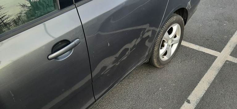 Rear passenger-side door dented – cosmetic only, doesn’t affect use