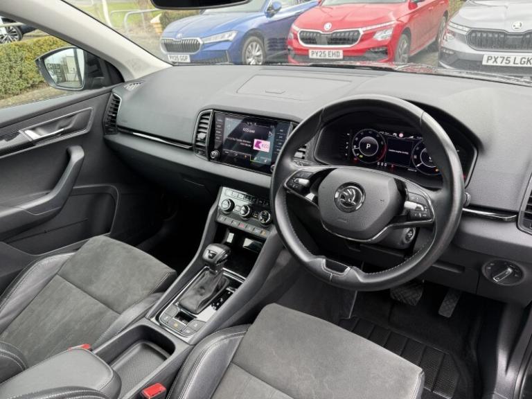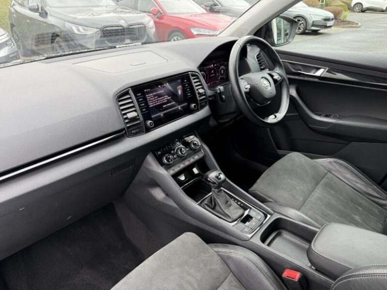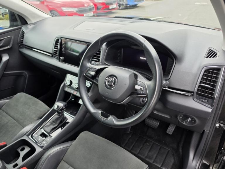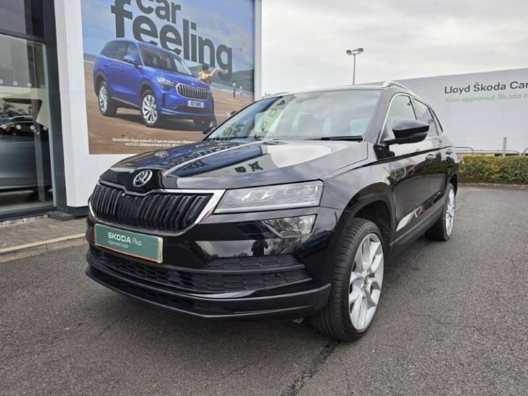 Here at Lloyd Skoda Carlisle we are pleased to welcome up for sale this brilliant Skoda Karoq finished in the sleek Black Magic exterior and Black cloth interior. The Karoq 1.5 TSI SE L 5dr DSG delivers a refined blend of responsive performance and everyday efficiency, with its 1.5-litre turbo petrol engine and smooth DSG gearbox offering strong low-end torque and confident acceleration for versatile driving. This vehicle features the Cruise Control which makes those long journeys are effortless taking the load off the driver reducing fatigue and increasing fuel efficiency, ensuring you're in for a great driving experience. Rear passengers are equally entertained with the use of folding tables fitted to the back of the front seats. It's rear parking sensors and Rear Camera make manoeuvring in tight spaces a breeze for a stress-free parking experience. Seamlessly connect your phone using SmartLink technology for Apple CarPlay & Android Auto to listen to your favourite podcasts and music on the go as well as navigation and all your other compatible apps on the 8 inch touchscreen display. Maximise your comfort at all times through the Heated Front Seats and Two-Zone Climate Controls. With 33 retailers across the North, you can collect your car from any Lloyd Motor Group retailer. Your used car from Lloyd Skoda Carlisle could be closer than you think.