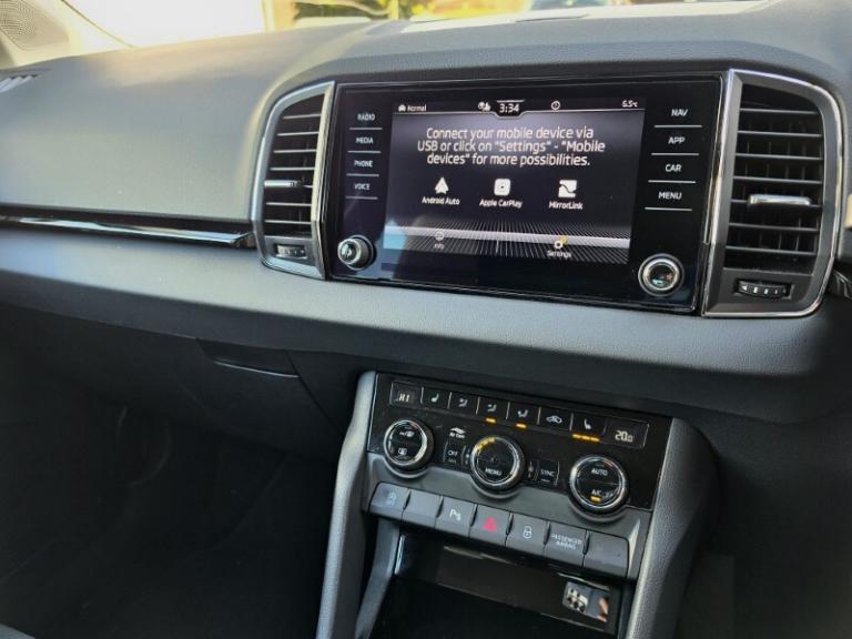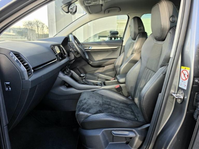 Lloyd Skoda Carlisle are delighted to offer this SKODA KAROQ stunning powered by a punchy yet economical 1.5TSi engine through the automatic DSG transmission, it puts out 147hp while still being capable of up to 58MPG! The SE Edition includes a host of fantastic features as standard; On the exterior, Black exterior styling such as the black grille, colour coded wing mirrors, rear diffuser as well as privacy glass and the diamond cut alloy wheels adds a striking sporty look which compliments the metallic Grey exterior making this SKODA stand out from the crowd! On the interior is the part leather upholstery with heated front seats making those frosty mornings a pleasure. Enjoy Apple car Play Android auto on the touchscreen infotainment system making using your favourite