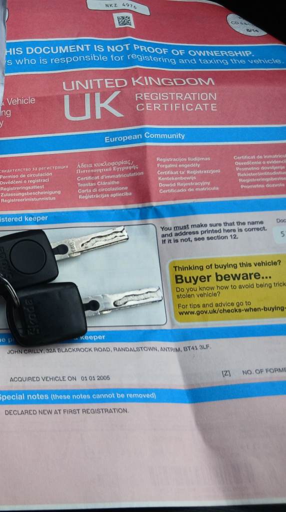 This vehicle has not been reported stolen, scrapped, exported or flagged as unroadworthy.